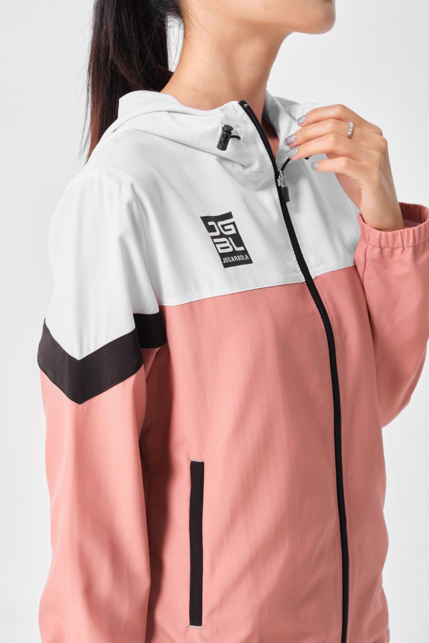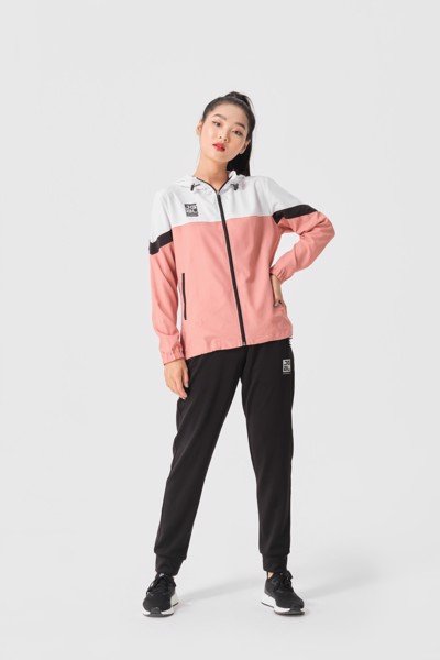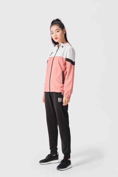 This Women sportswear tracksuit, with decorative and elaborated screen prints, is made of functional 100% polyester material which features heat-retaining and water resistant properties, making it suitable for all outdoor sport activities. Spandex cuffs at sleeves and pants keeps wearer warm during thorough outdoor activities sessions.