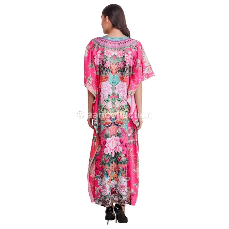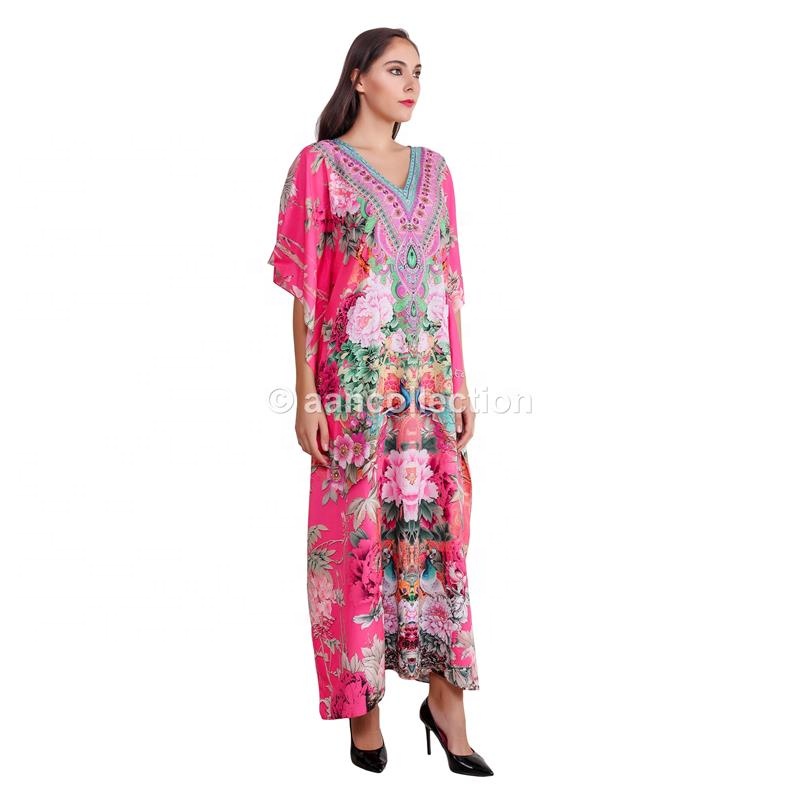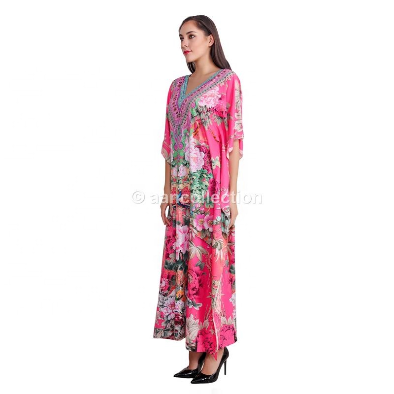Q.1 - I wish to get my own design printed for a kaftan, Can you do it ? If Yes what will be the MOQ?Ans. Yes certainly we can print your own design on your choice of fabric. You can send us hi resolution images and we aill print the same on the fabric. Further if you want you can share us an inspiration image and we will create a design exclusively for you based on the inspiration. We do not bound our clients with MOQ but being a manufacturer we prefer wholesale order and do not fulfill retail order.