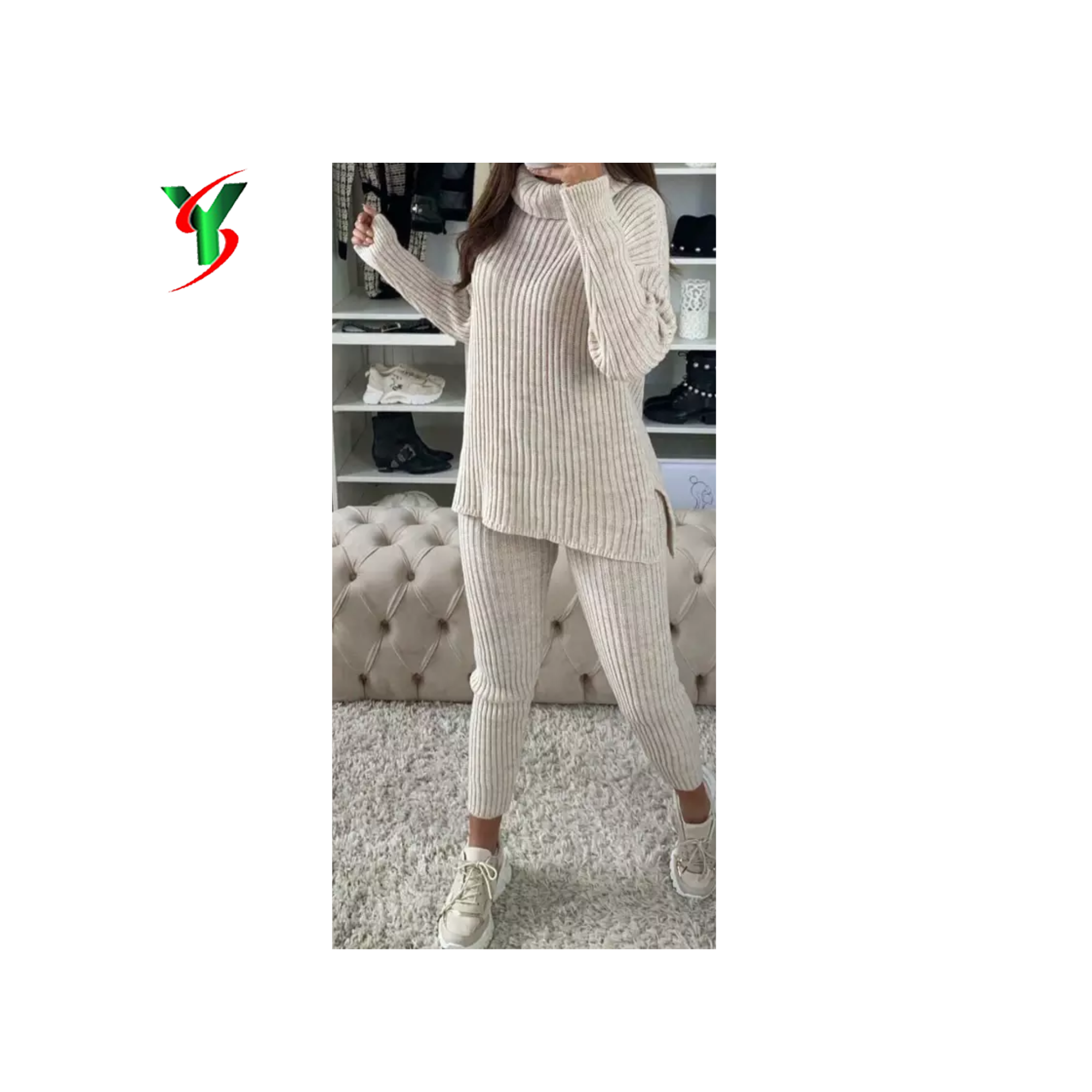 Knitted 2Piece Solid Color Sexy Casual Fit Batwing Sleeve Slit Hem Casual Home Wear Set Women Sleepwear Pajamas for Women