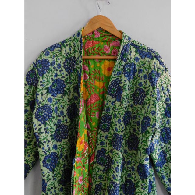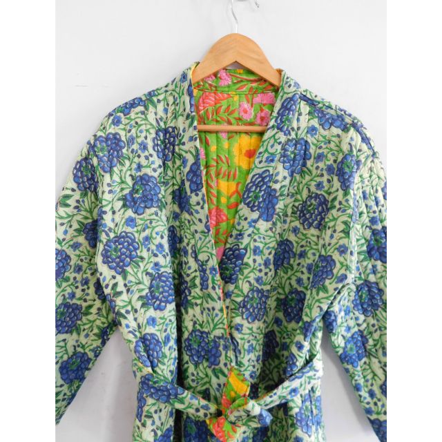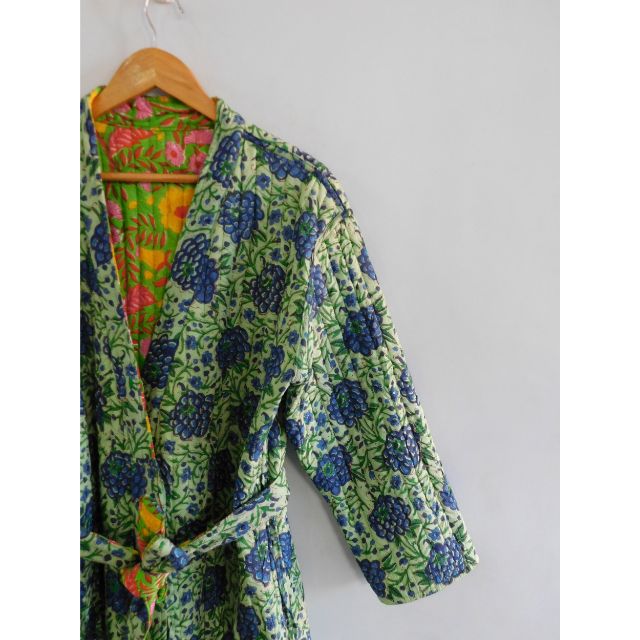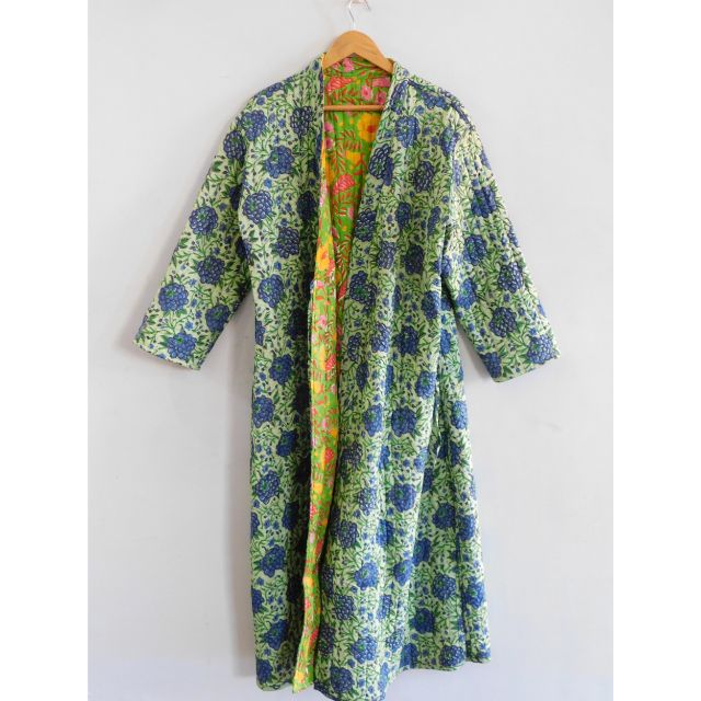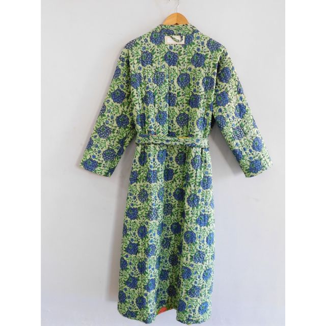 Indian Long Cotton Women Kimono Floral Block Printed Robe Maxi Gown House Bathrobe Elegant Women Evening Dress Summer Wear