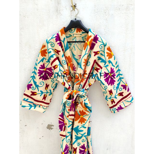 Suzani Hand Embroidered Jacket All Color Indian Handmade Kantha Quilt Kimono Jacket Kimono Kantha Kimono Women Wear Front Open