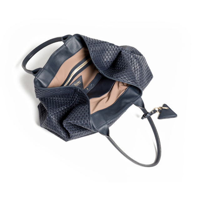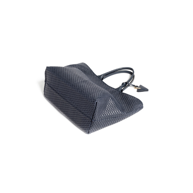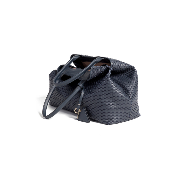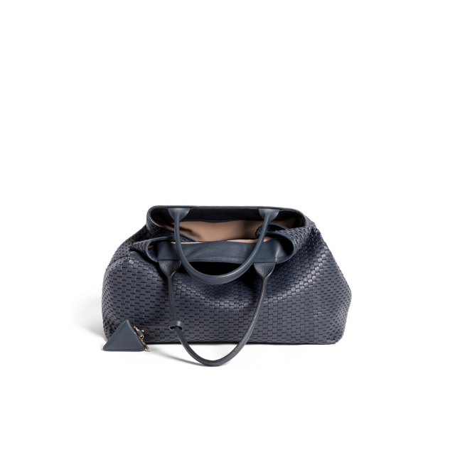 High Quality Made in Italy Woven with 18th Century Treadle Looms Leather Large Tote Bag Dark Blue for Everyday and Travel