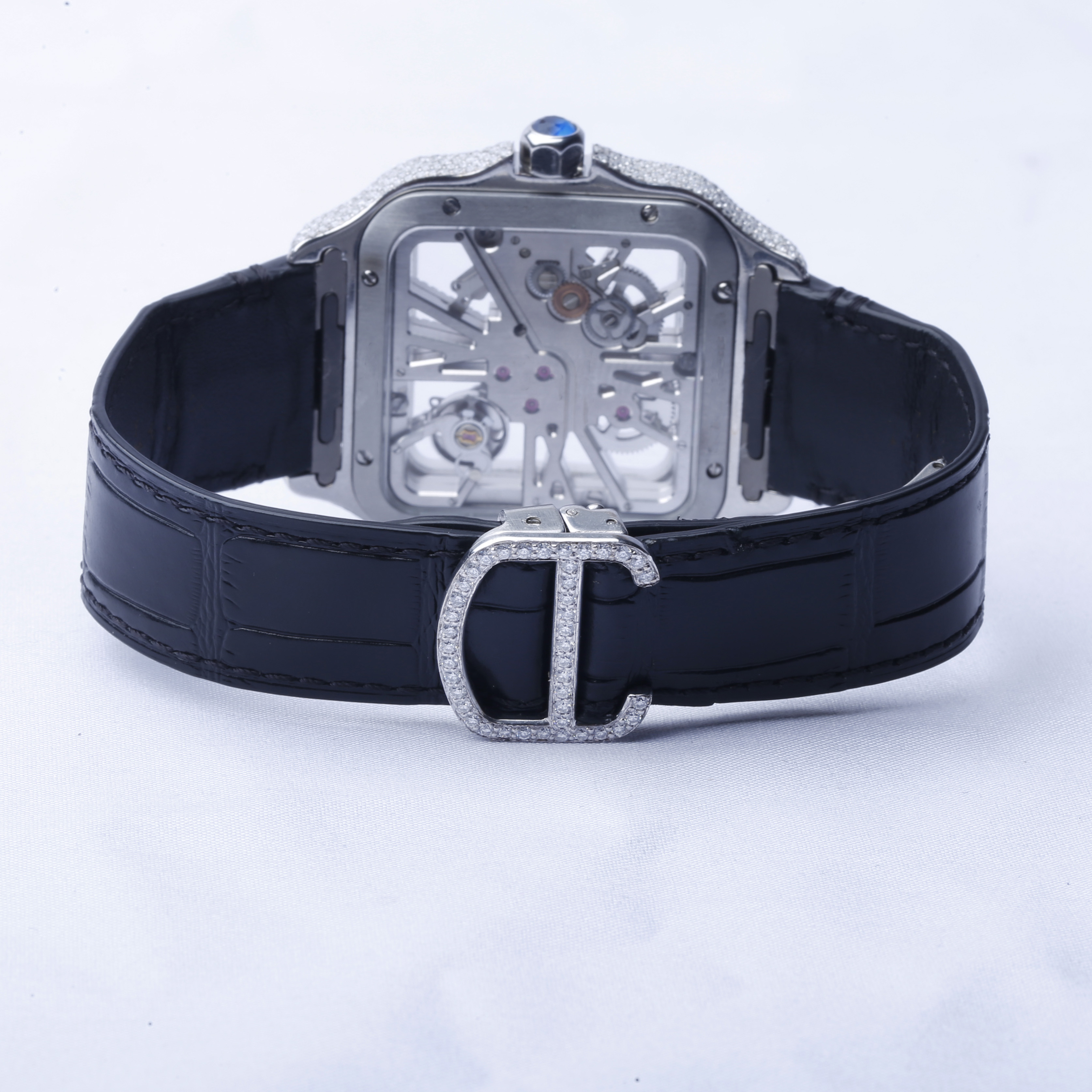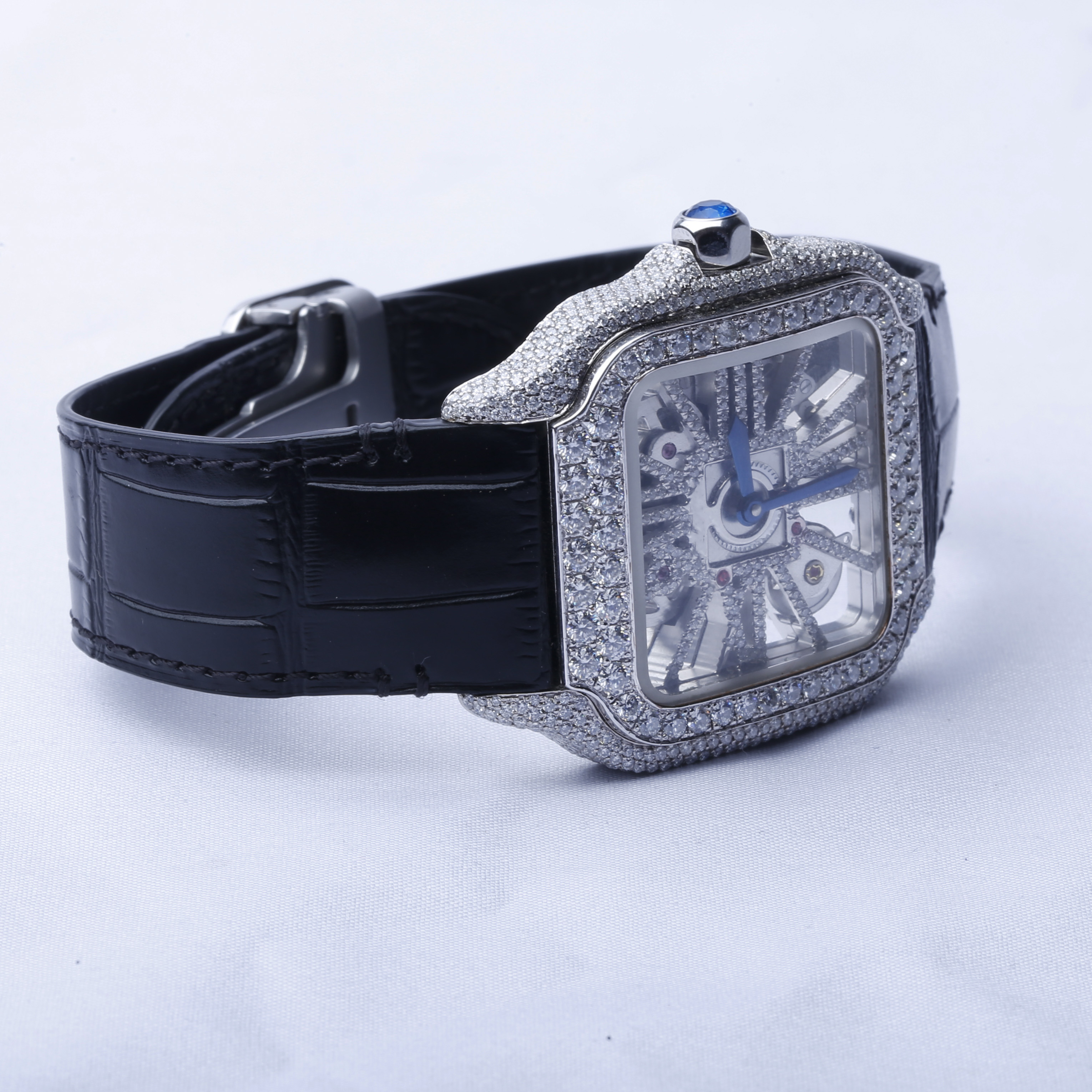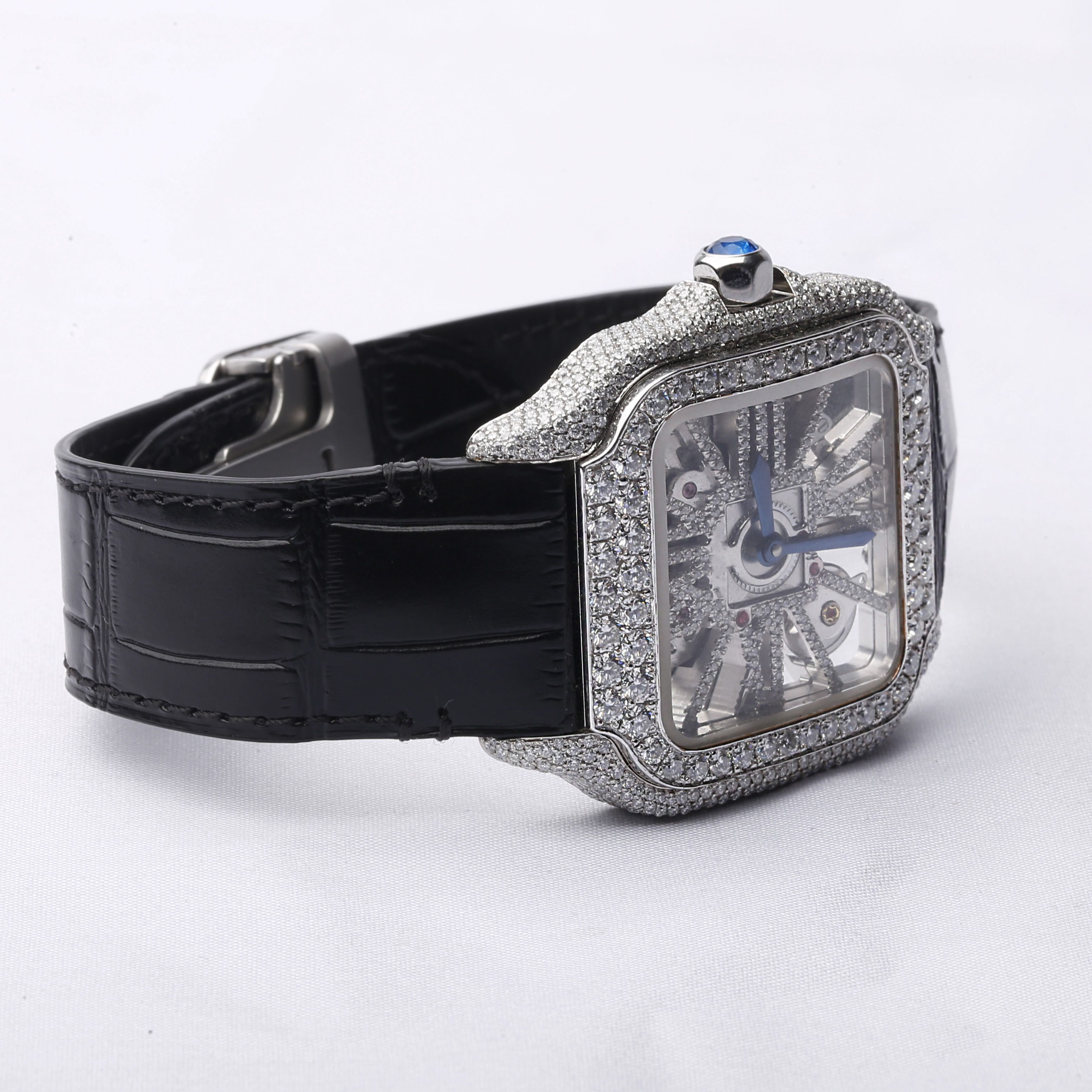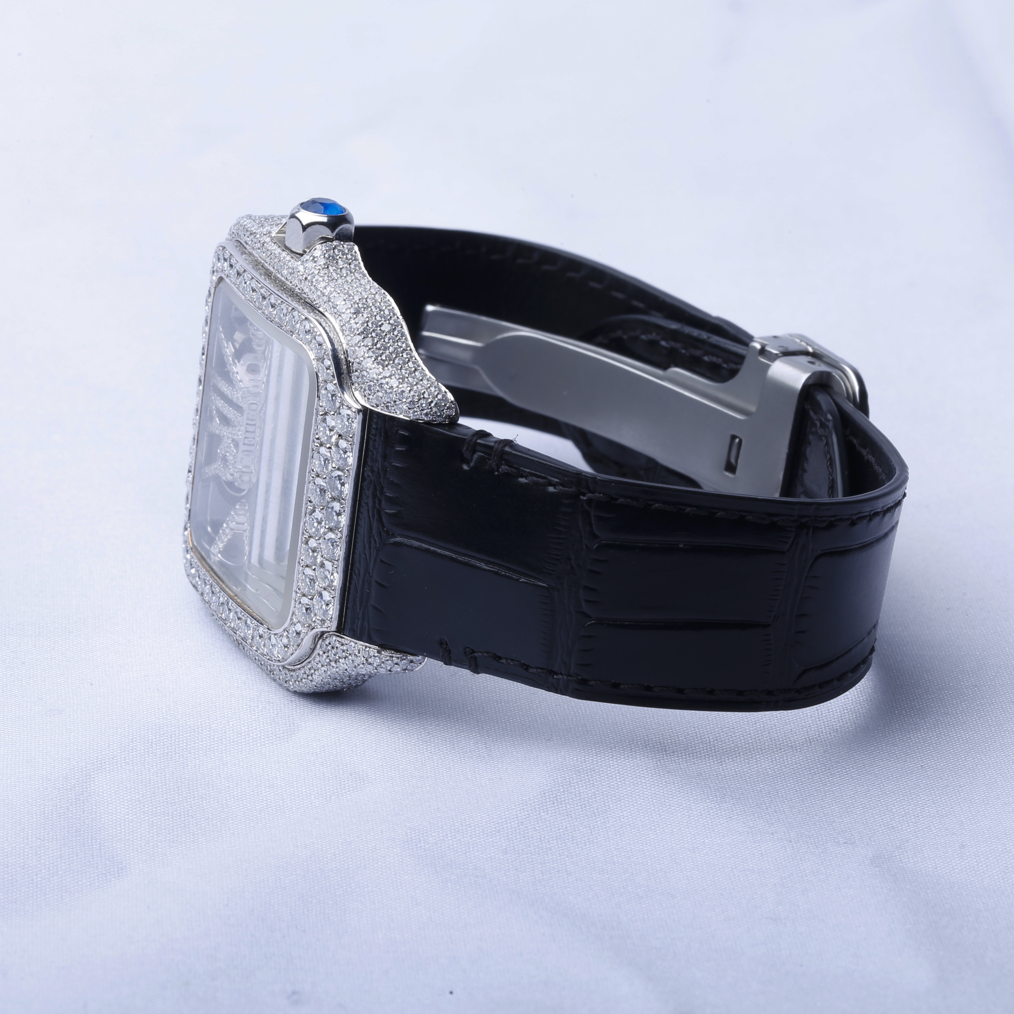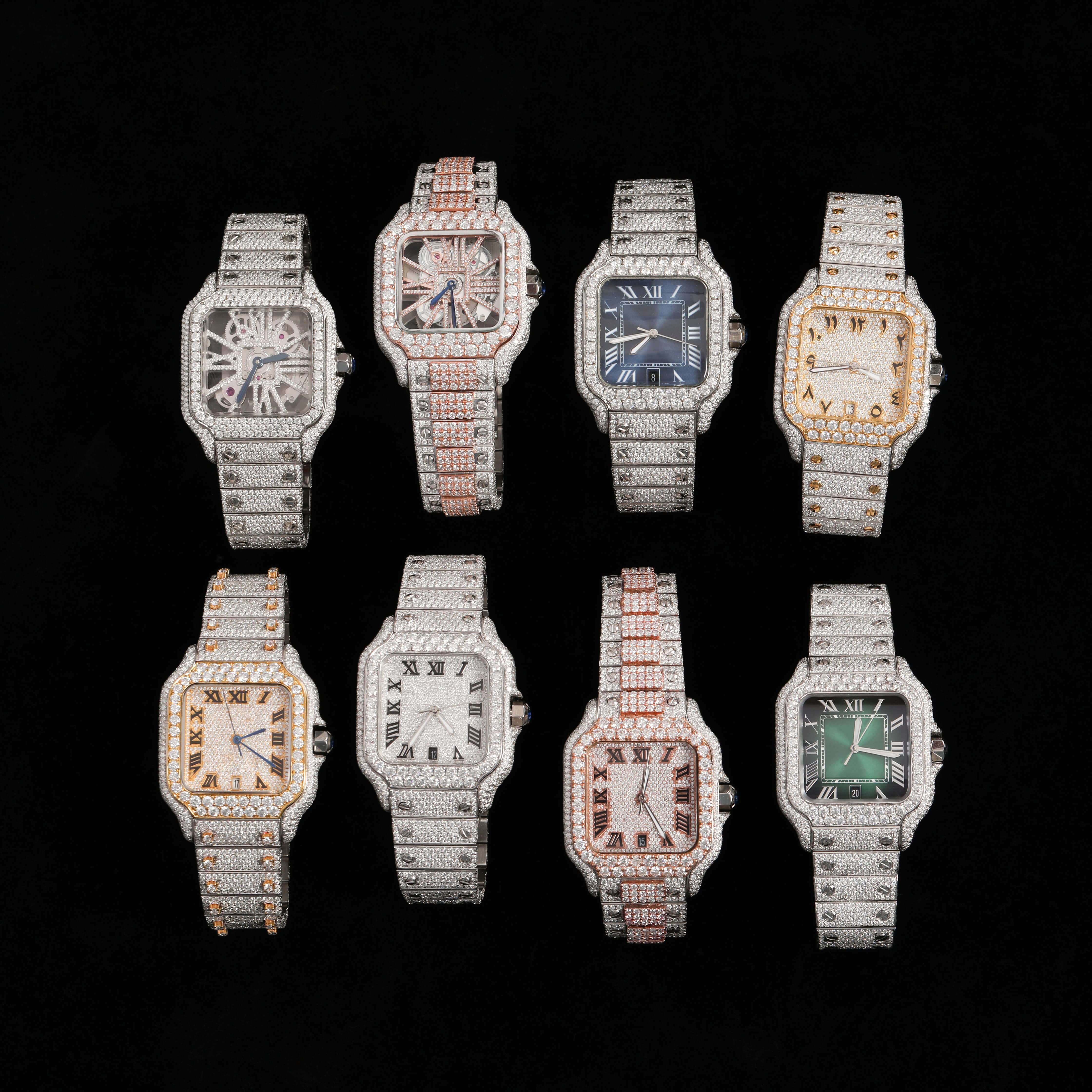 Half Iced Out Black Dial VVS Moissanite Mechanical Wrist Watch/ Featuring Calendar Top Quality for Trendsetters Diamond Watch