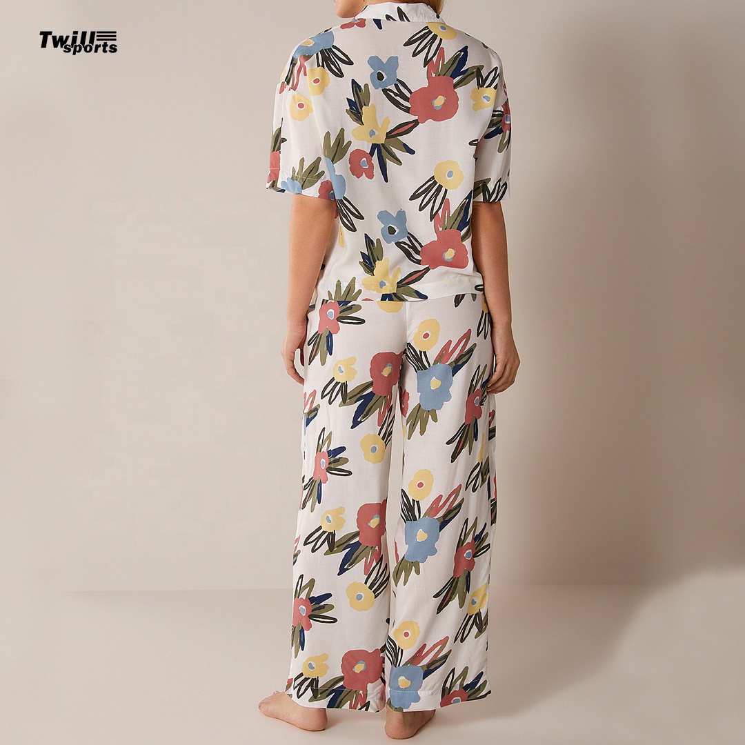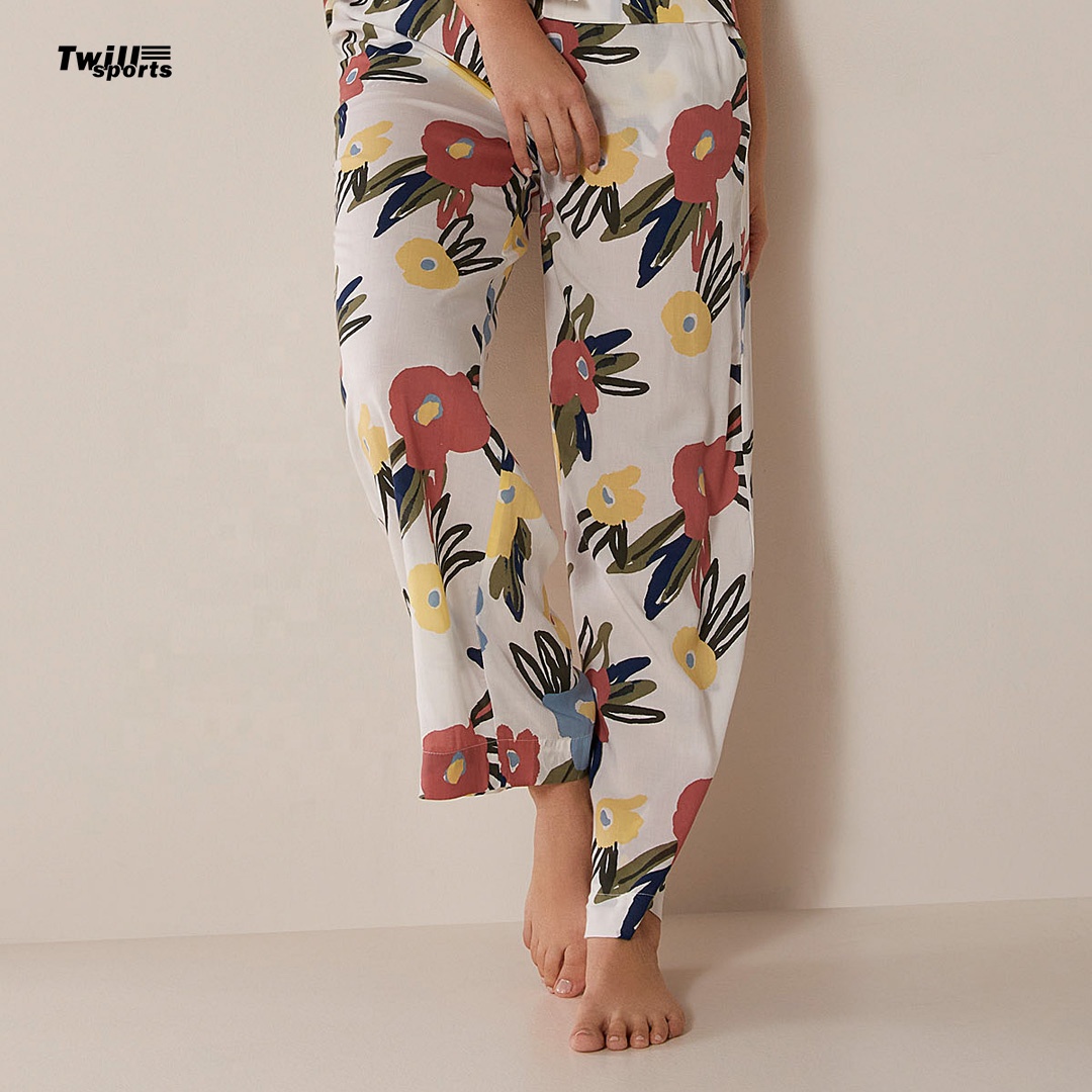 Wholesale Manufacture Customized Women's Long Sleeve 100% Cotton Pajama Set, Pajamas Sleepwear