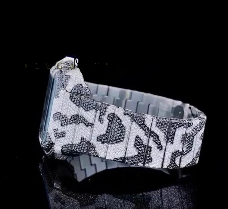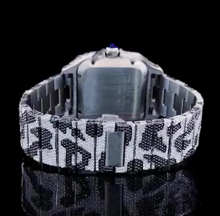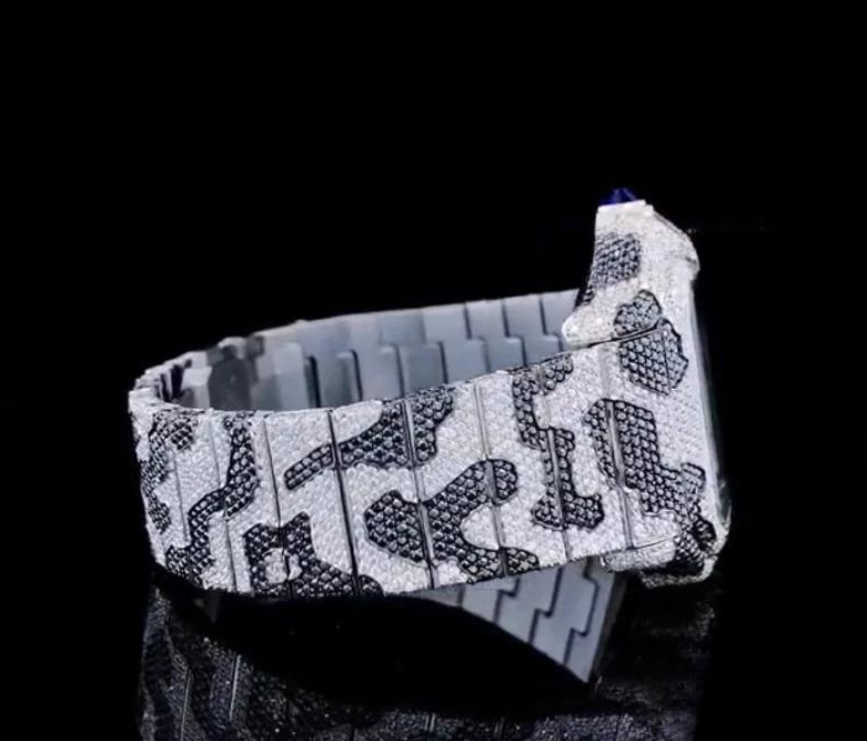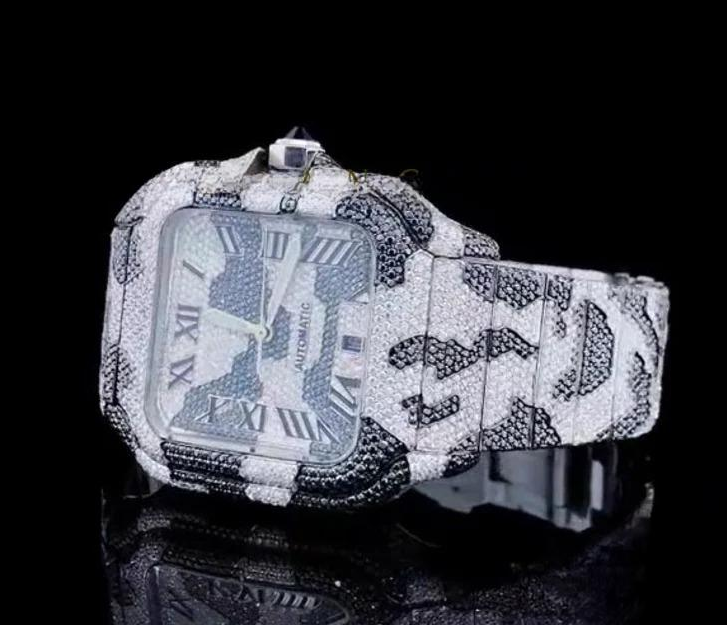 Black and White Moissanite Diamond Mens Wrist Watches Fully Iced Out Custom Made Automatic Movement Watch for Indian Suppliers