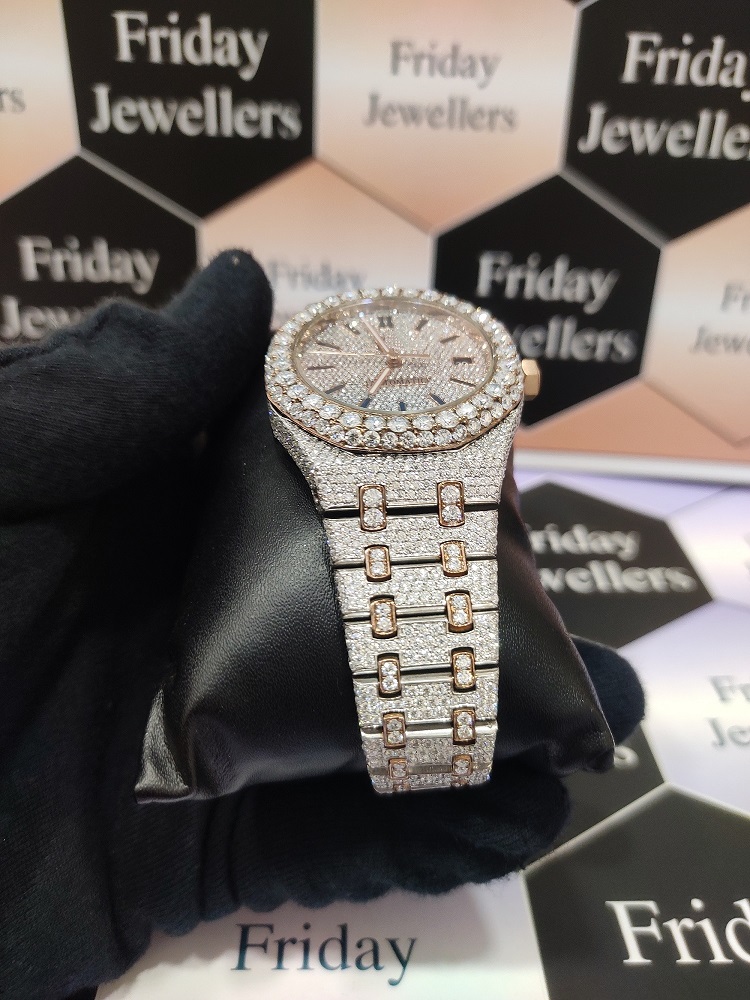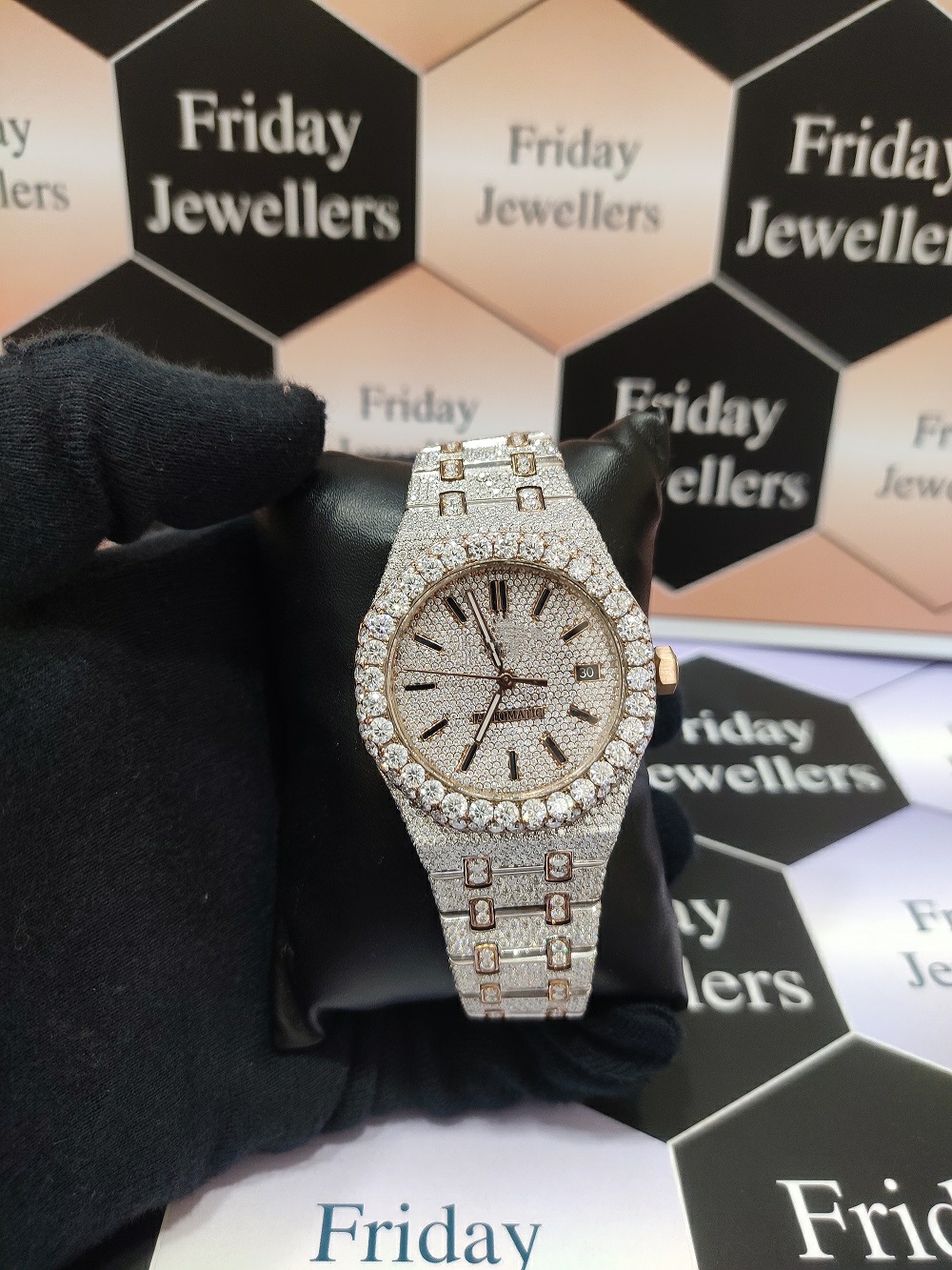 Women's Luxury Style Iced Out Watch Handmade with VVS Clarity Moissanite Indian Big Manufacturer Low Price Attractive Dial