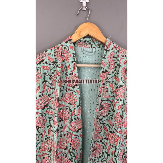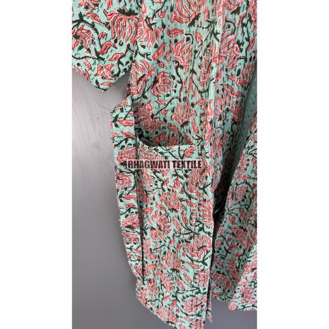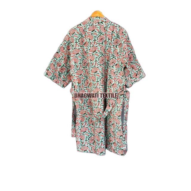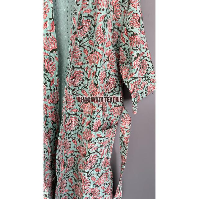Unisex Cotton Bathrobe Short Length Kimono-Style Pajamas Handmade Kantha Design with Bamboo Sleepwear Gift for Women