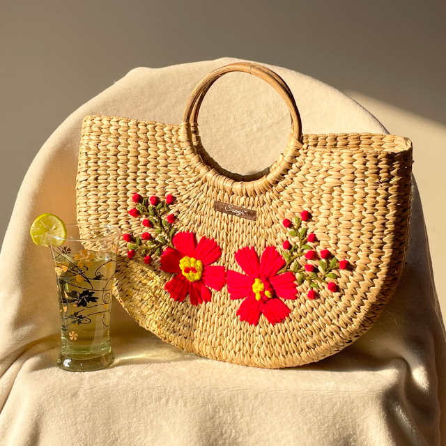 Saanjh Smile U-Shape Handwoven Embroidered Beach Tote Bag