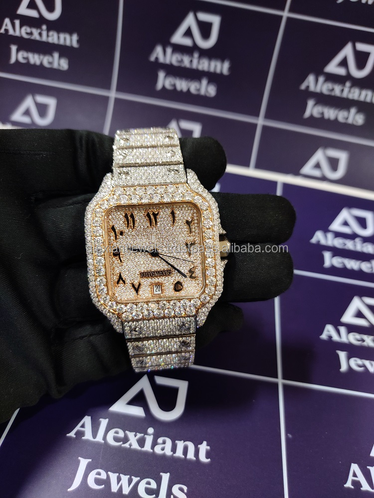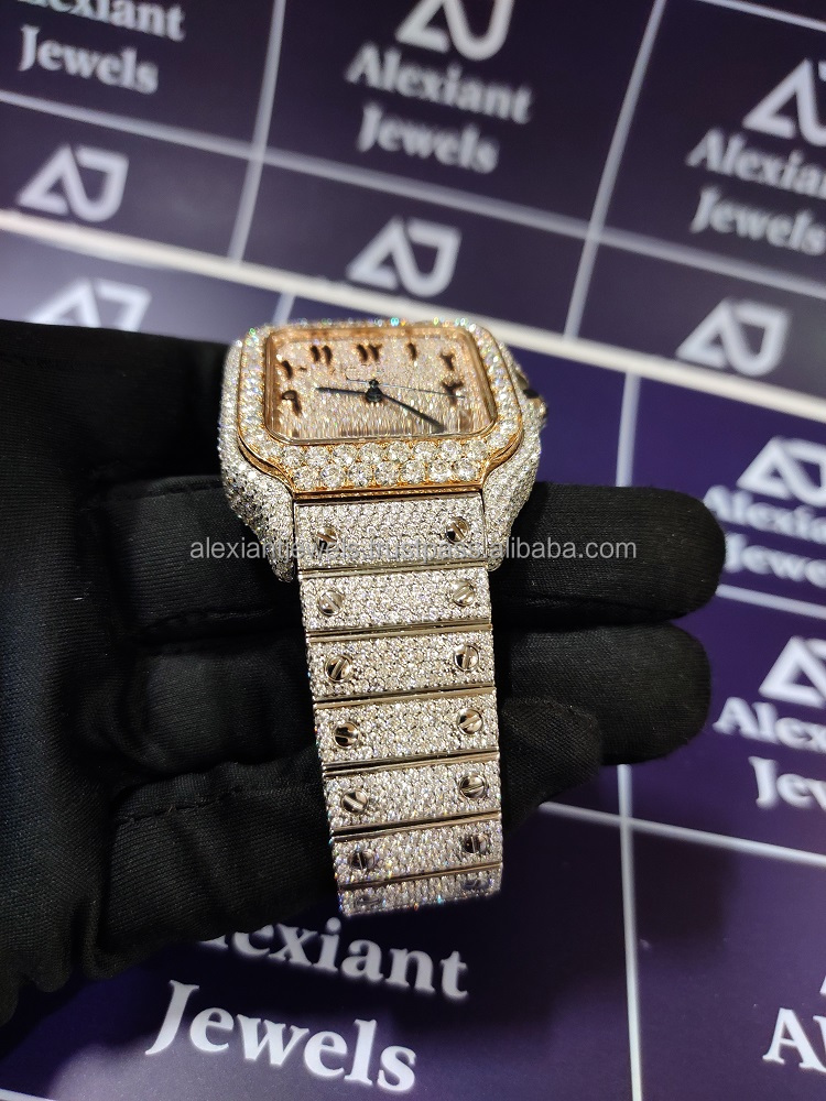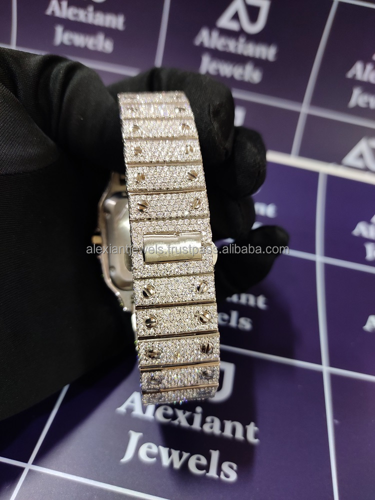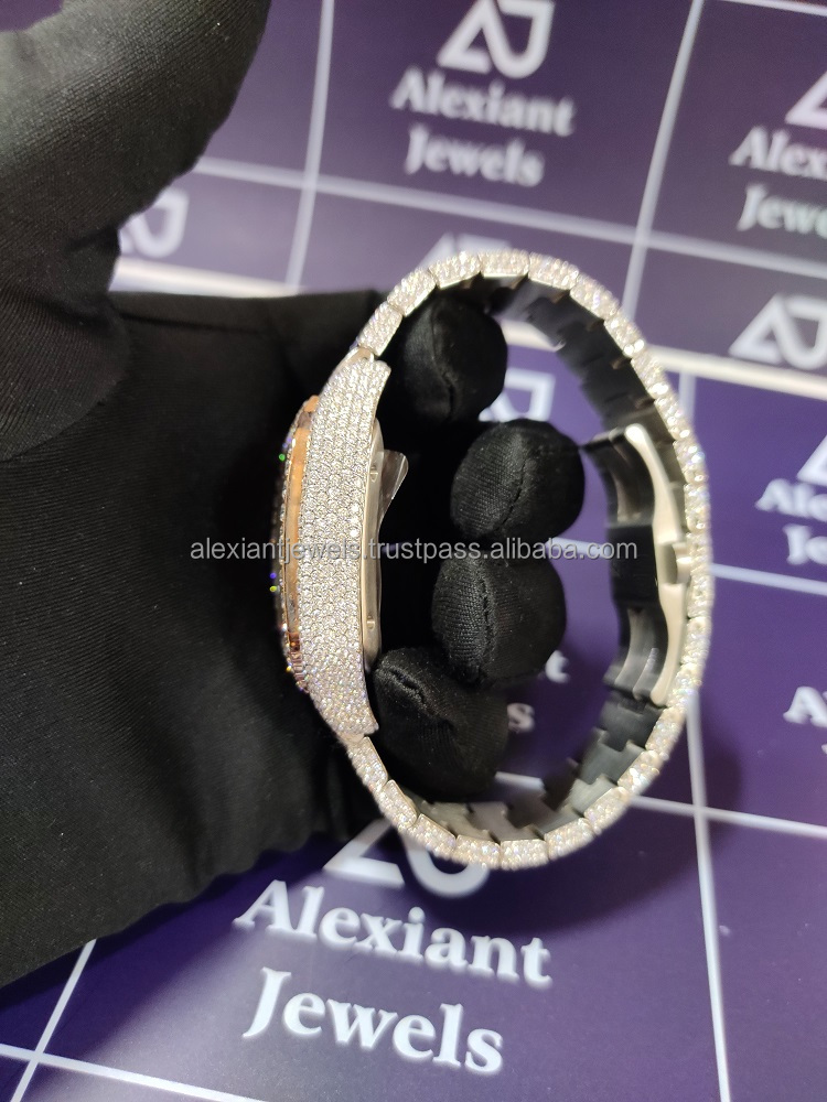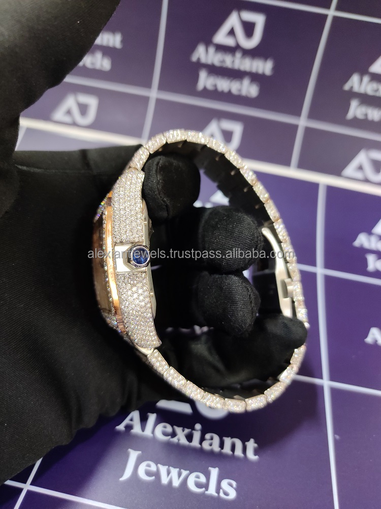 Standard Quality Iced Out Vvs Moissanite Watch with Hip Hop Style Luxury Watch for Men's Women's From India Export