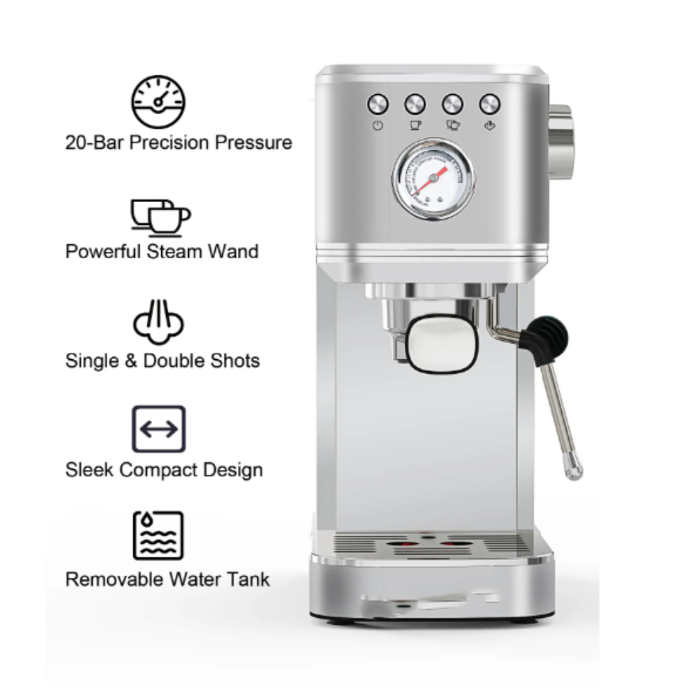 Casabrews 20 Bar Espresso Maker Portable Electric Coffee Machine with Milk Steam Best Seller for Household Hotel Use US Plug
