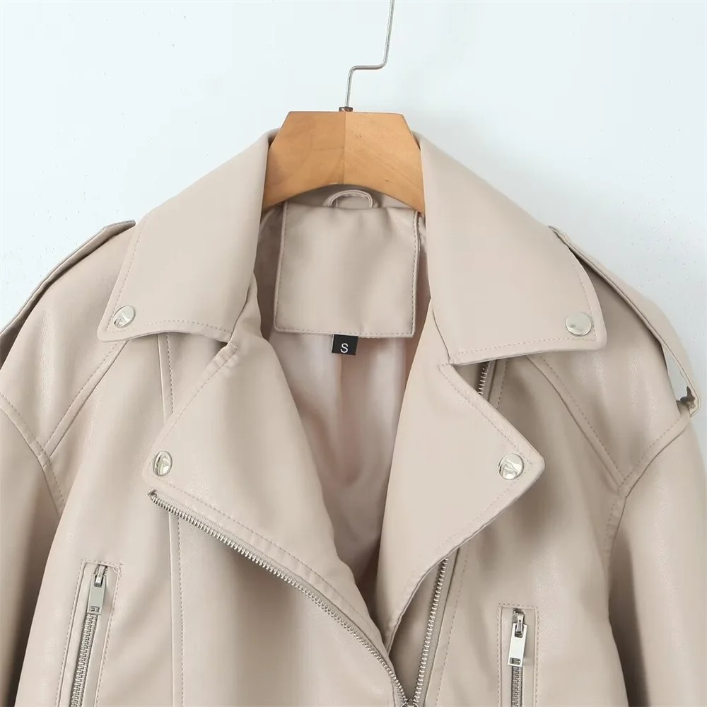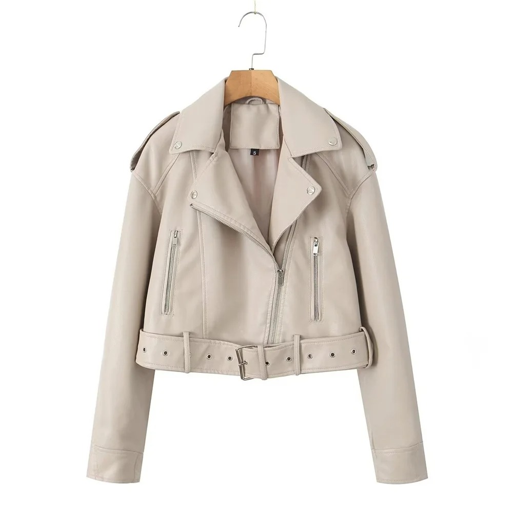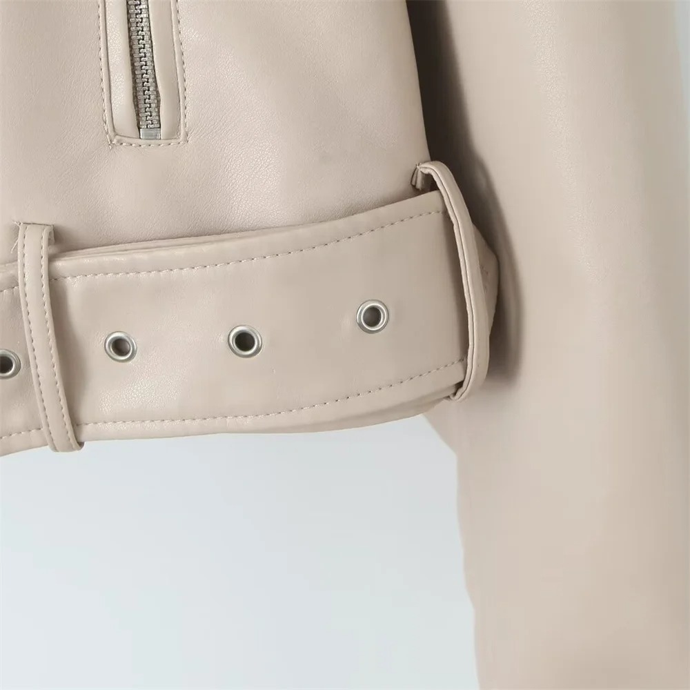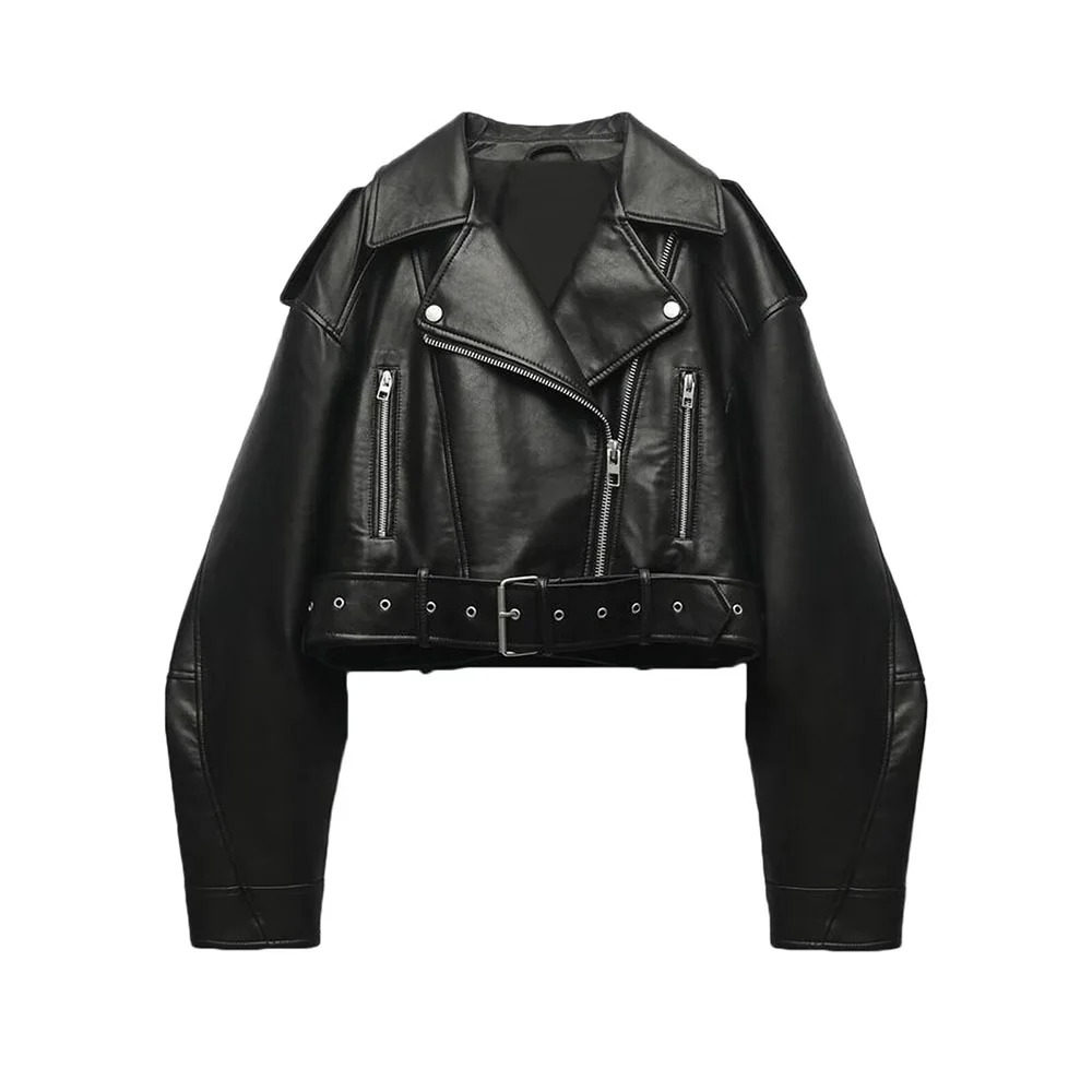 2025 Autumn New Women's Black PU Leather Motorcycle Suit with Belt Short Leather Jacket Imitation Leather Jacket Coat