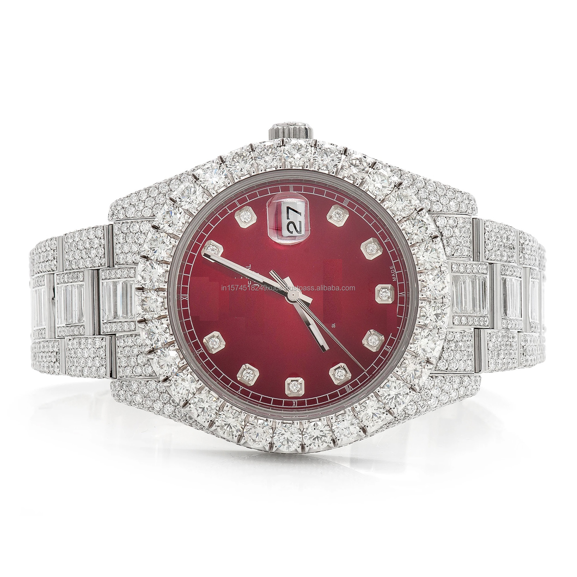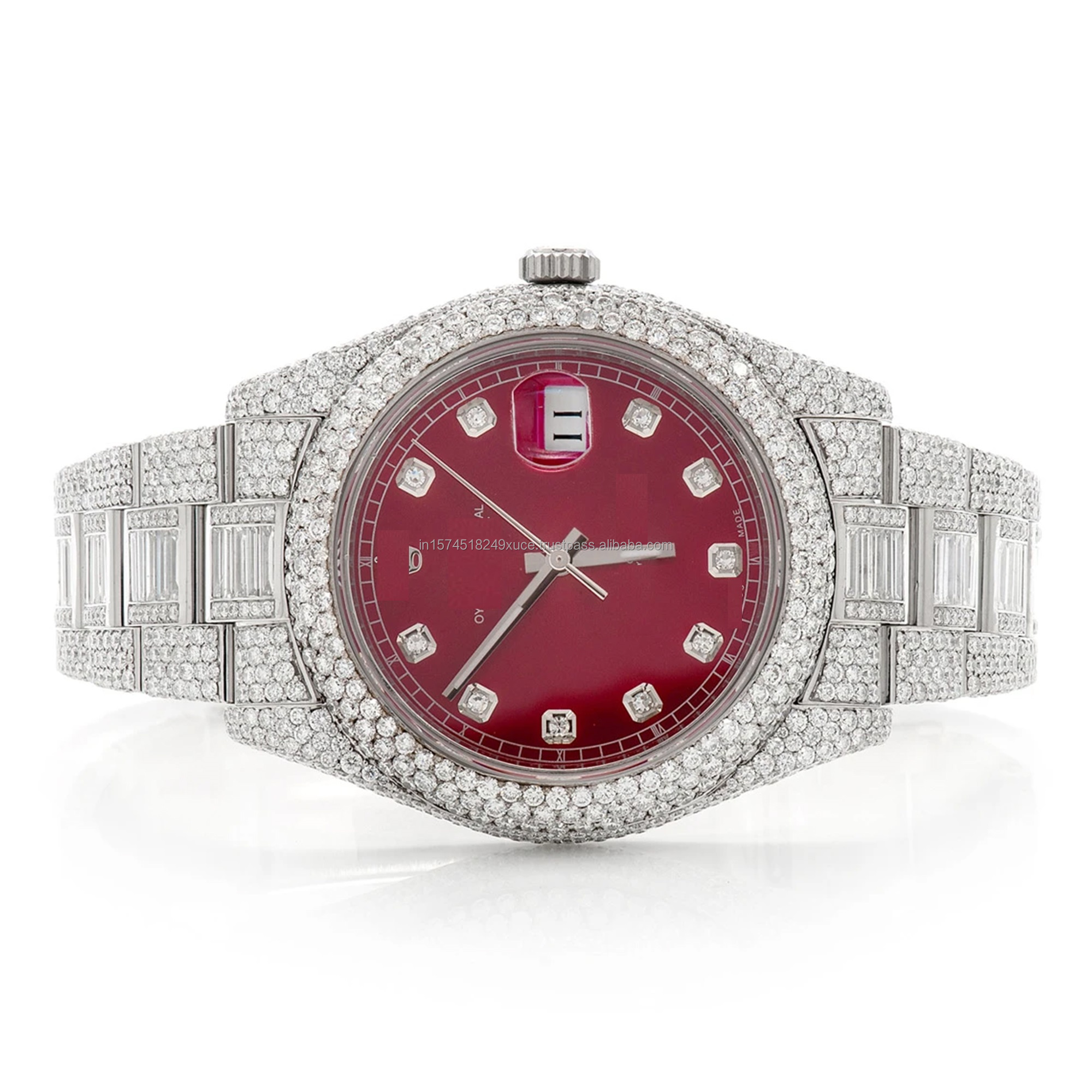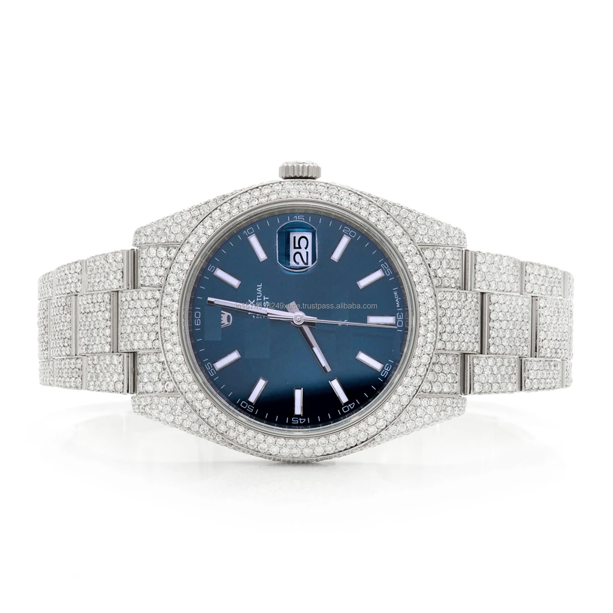 Verified Supplier Natural Diamond Hip-Hop Women's Watch Silver Blue Face ETA Quartz Moissanite Watches