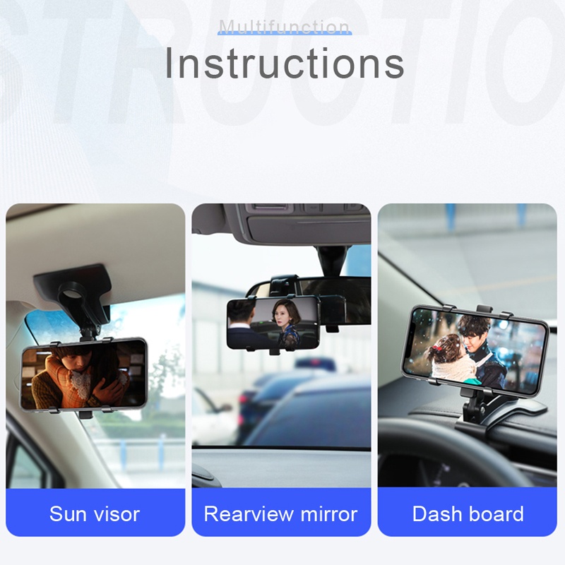 Specifications:Material: ABSSuitable: 3-7inch phoneInstallation location: Car rear view mirror,dashboard, sun visorColors: Black