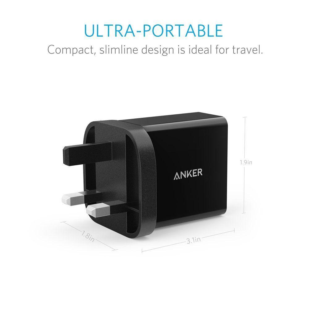 Super Compact The Anker 24W 2-Port USB Wall Charger is one of the most compact dual-port USB chargers on the market, allowing for easy use on the go.