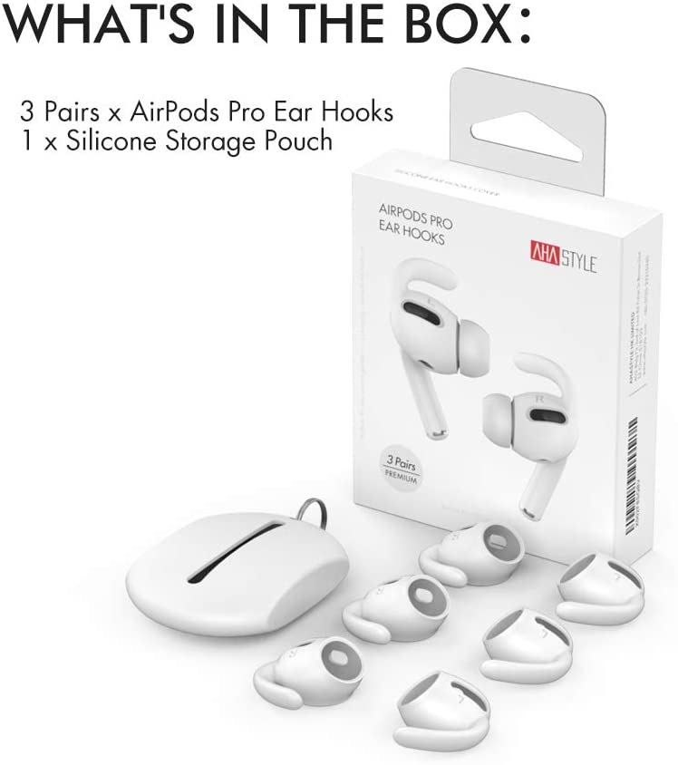 AhaStyle AirPods Pro Ear Hooks [Added Storage Pouch] Anti-Slip Ear Covers Accessories [Not Fit in The Charging Case] Compatible with AirPods Pro (White / Black)