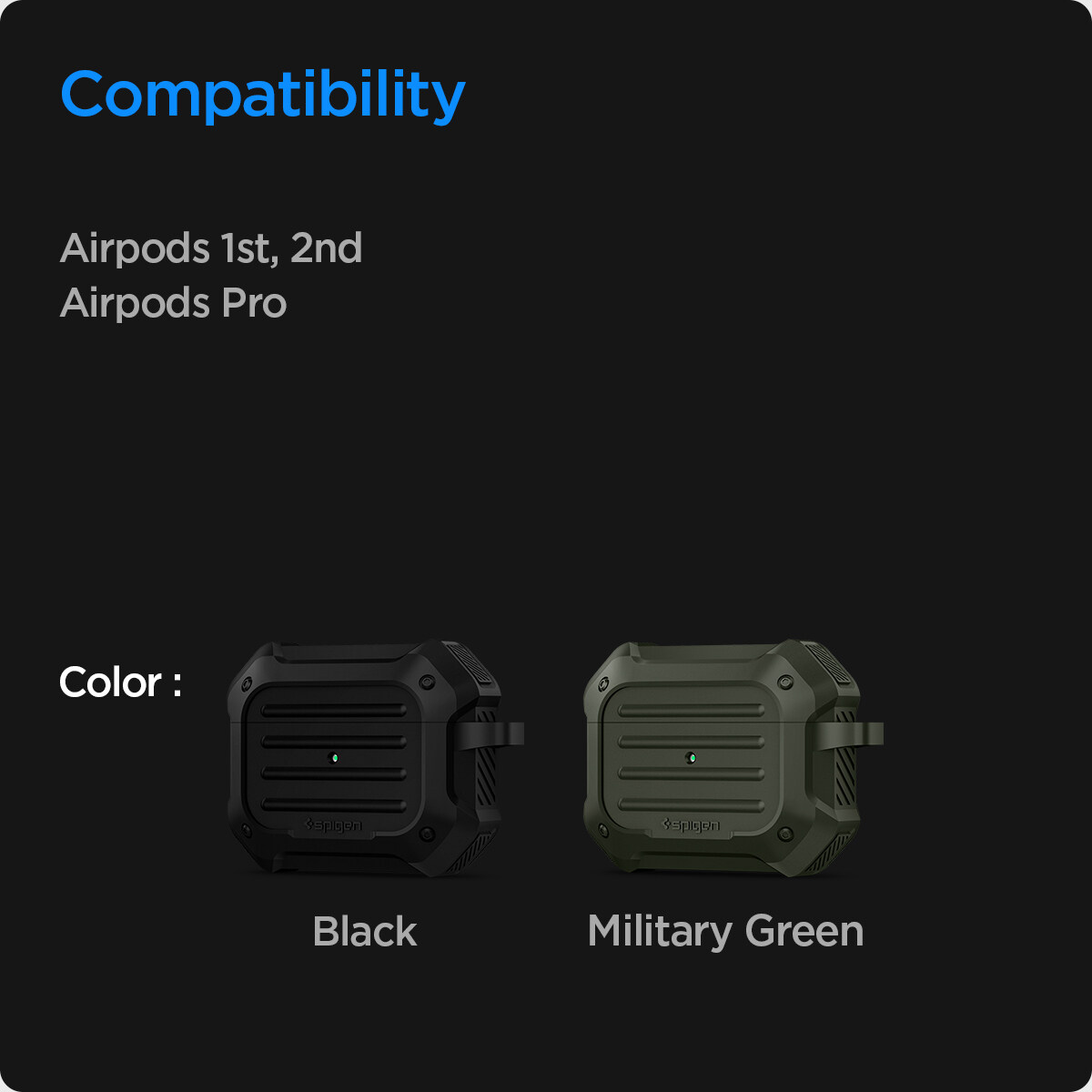 SPIGEN [Tough Armor] Airpods Pro / Airpods 2nd / Airpods 1st Case with Extreme Shockproof Protection and Included Key Ring *Front LED Visible* Compatible with Airpods Pro Case / Airpods 1 Case / Airpo