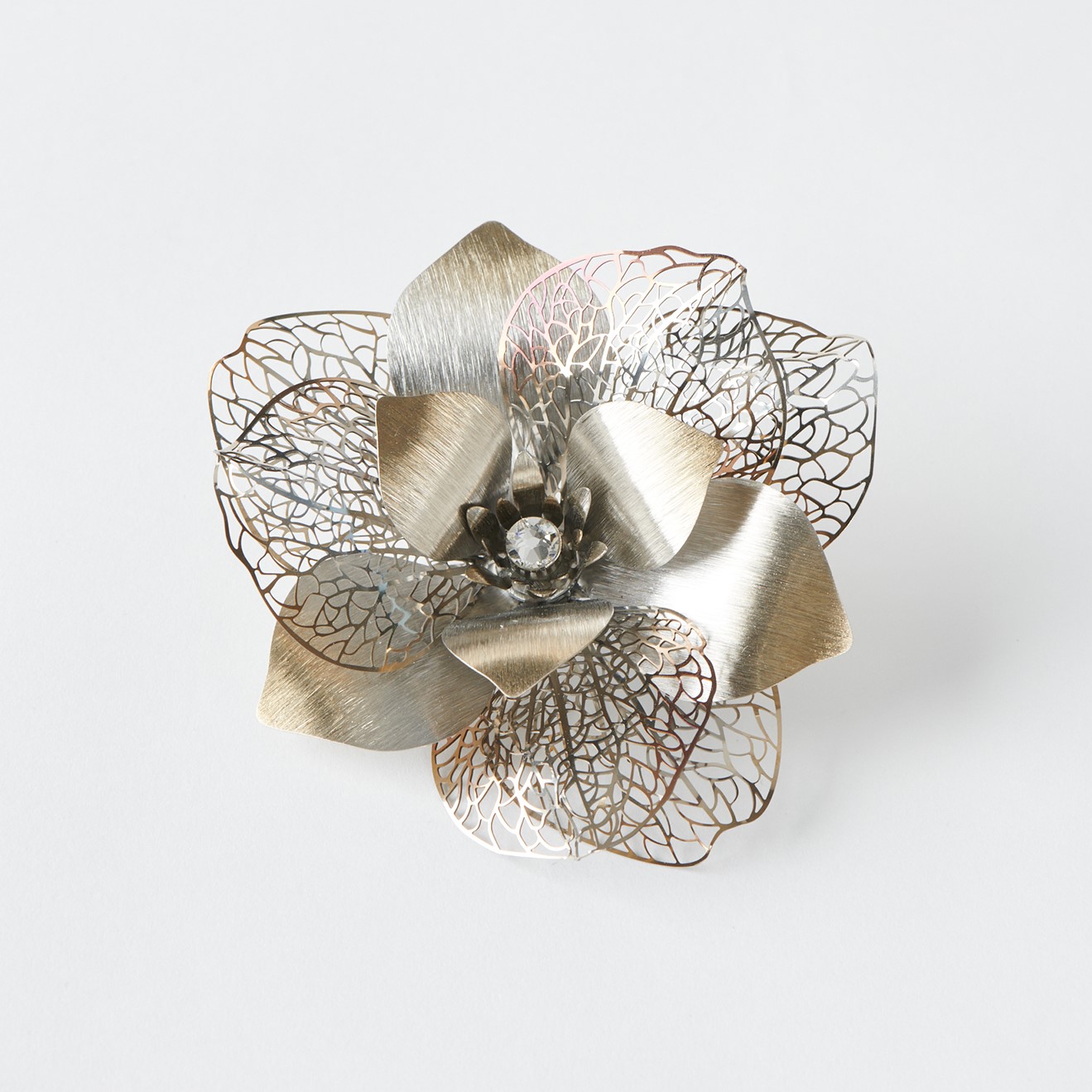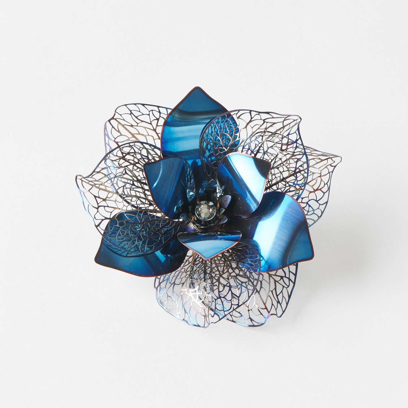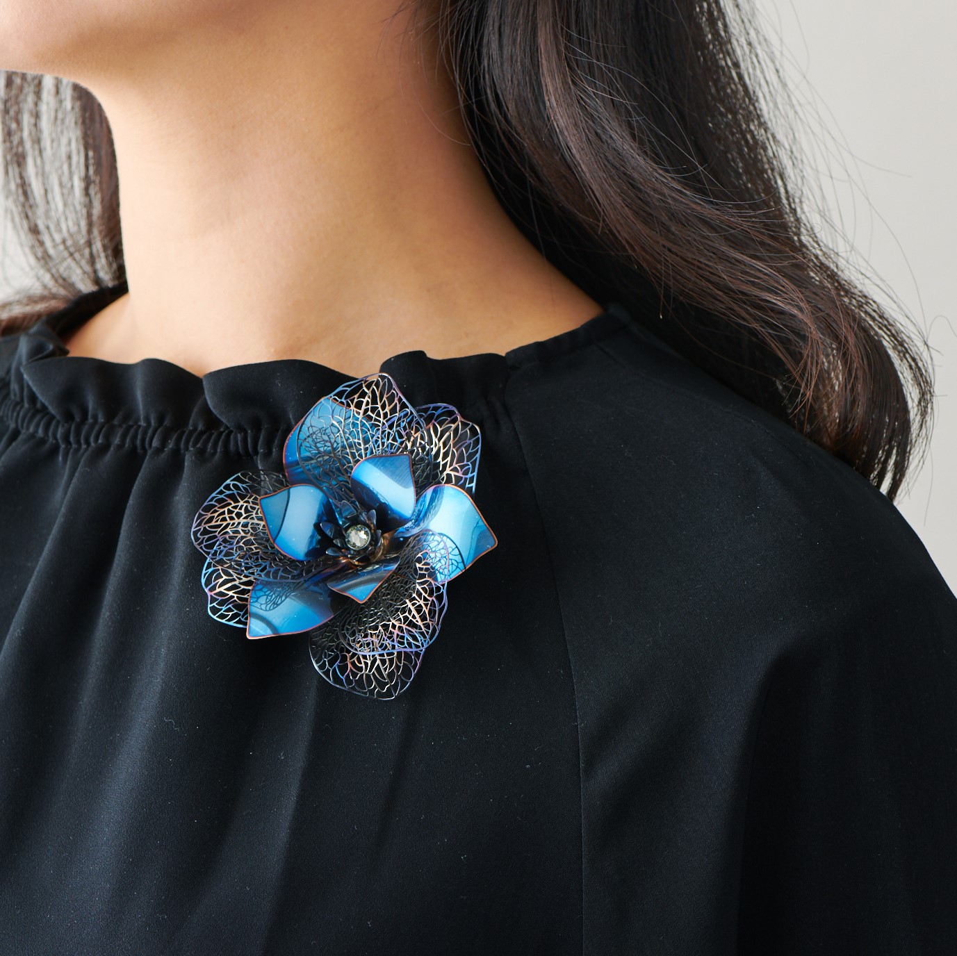 High quality and reliable made in Japan. In order to match characteristic "forever”,we use long-lasting materrials and high-quality stainless steel. By carefully smoothing and sharpening the surface, the brilliance and beauty are perfectly expressed.                                                   Clematis with the name of beautiful and noble "Queen" with impressive openwork petals. The elaborate flower veins expressed by advanced craftsmanship are eye-catching, and it is a self-confident work of THE BLOSSO. It is extremely lightweight and does not hang down even when worn in a thin blouse, so you can use it without worrying about losing your clothes. The product comes with a magnet and a display stand. You can enjoy it as his interior by attaching it to the attached display stand.                    material :stainless steel weight:(about)20g size:(about)8.5cm color: gold / Aurora blue / Pink                                                                                                               【About the simply usability】      ●Easy to wear with magnets Powerful magnets(Neodymium magnet)are attached,so it is easy to wear even on winter knit fabric. ●Light weight since the product is quite big in three-dimensional size , you might think it is heavy . But in fact , the average weight is 70 grams , making it also usable even on georgette blouses. ●Prodauct care Made out high - quality stainless steel , dropping the product wouldn’t harm. You can easily wipe off the dust with a cheek-brush. ●Continuous beauty Since the stainless steel of, aging, such as copper or brass does not occur.Can be used in long and beautiful condition with color and shape.