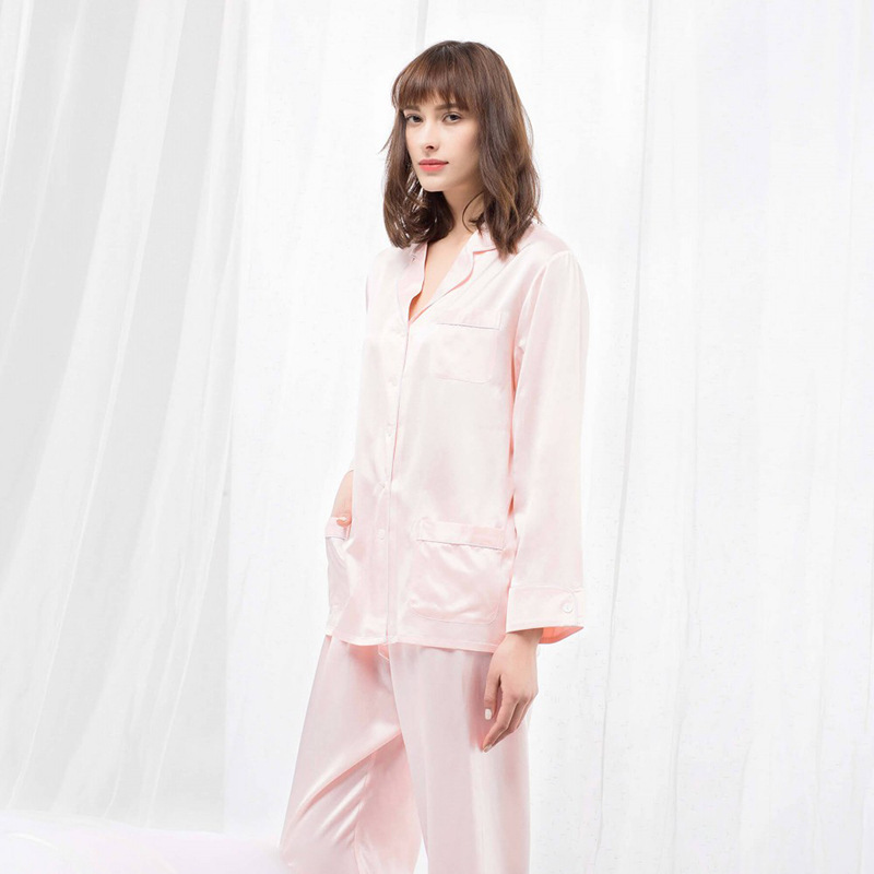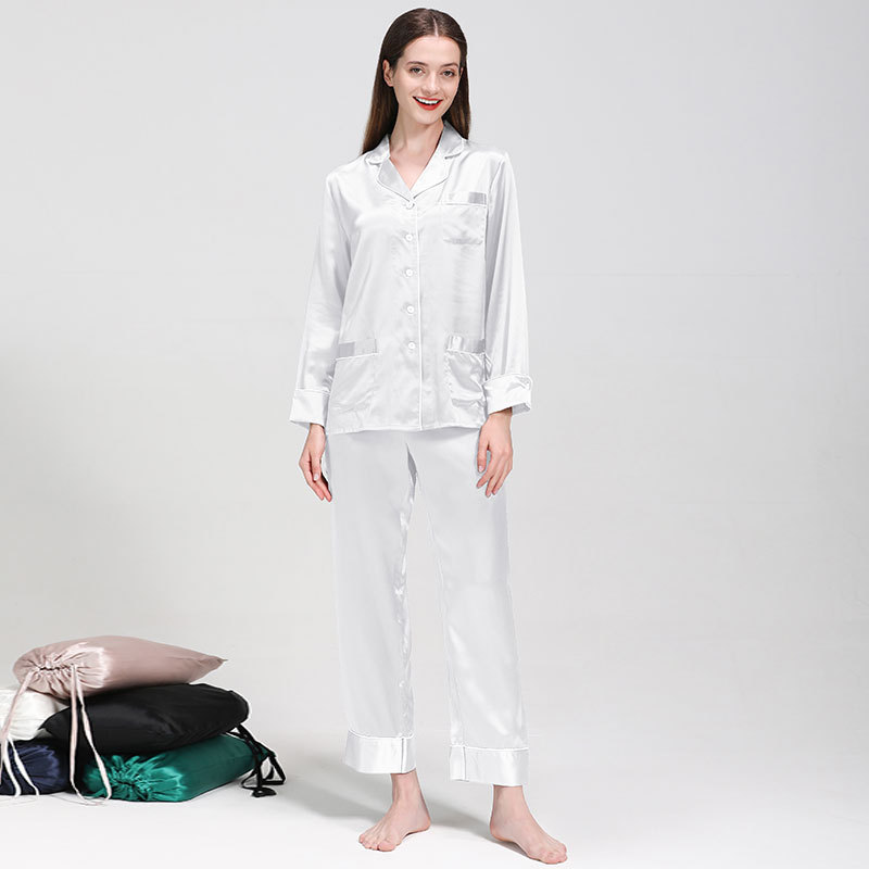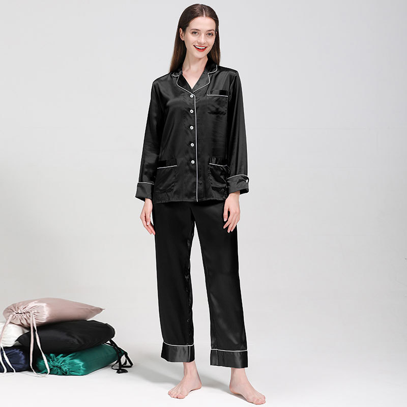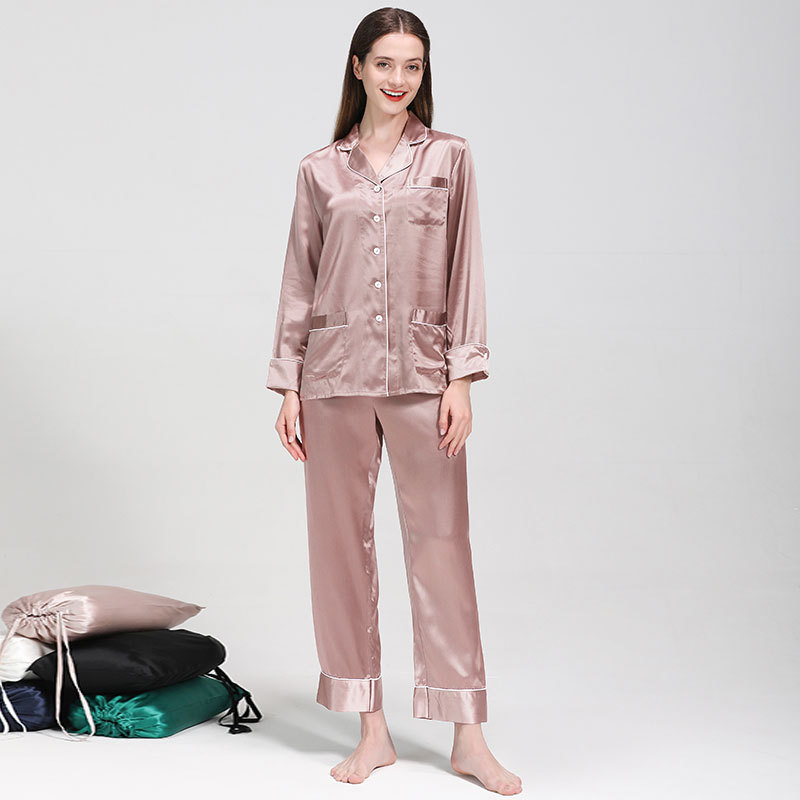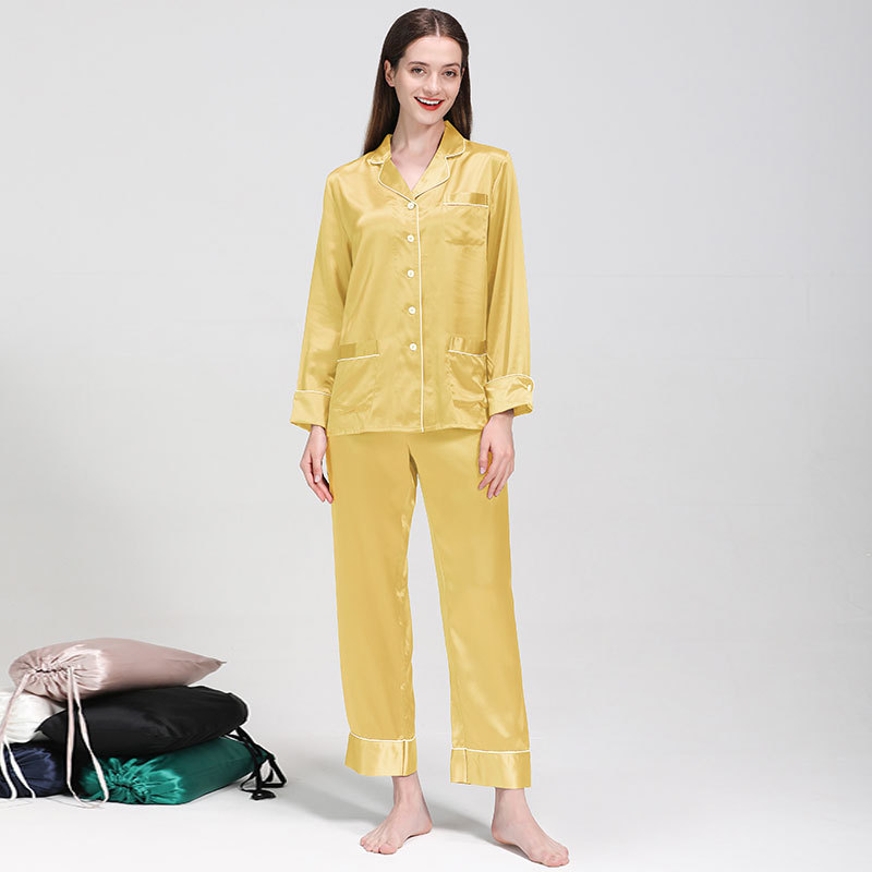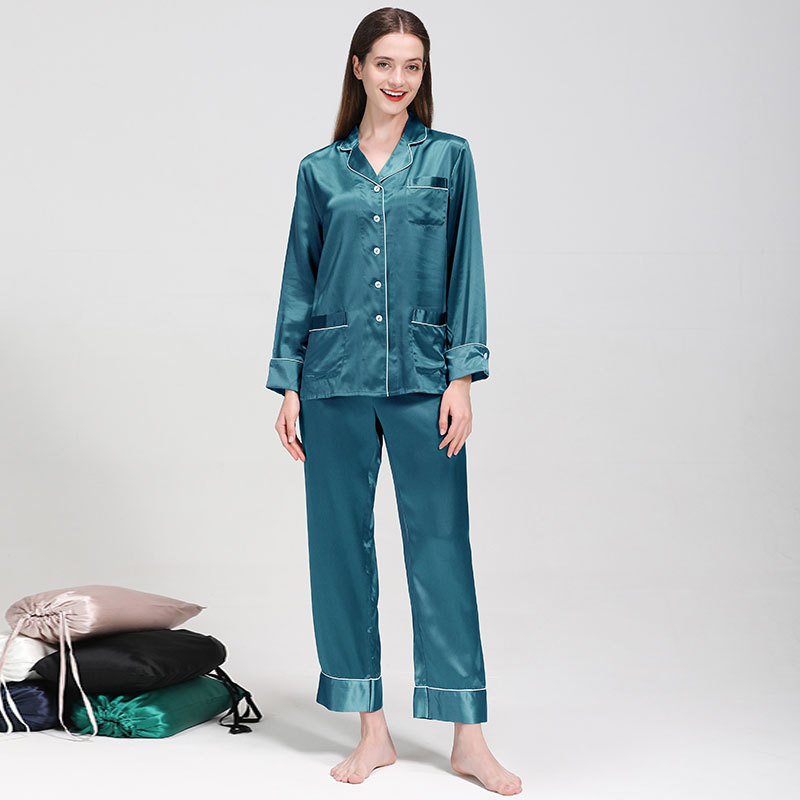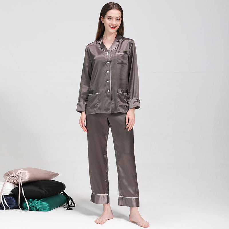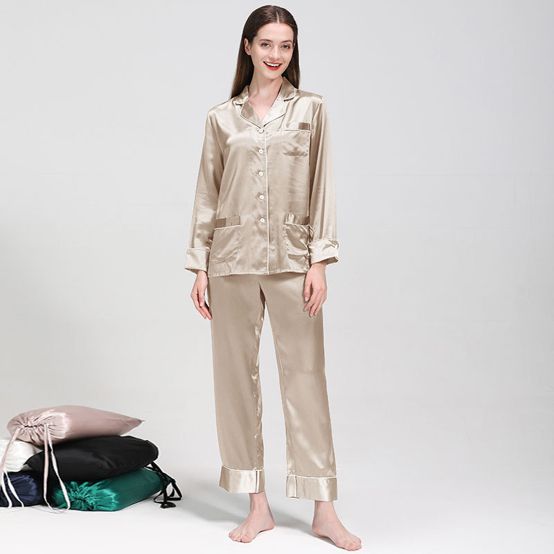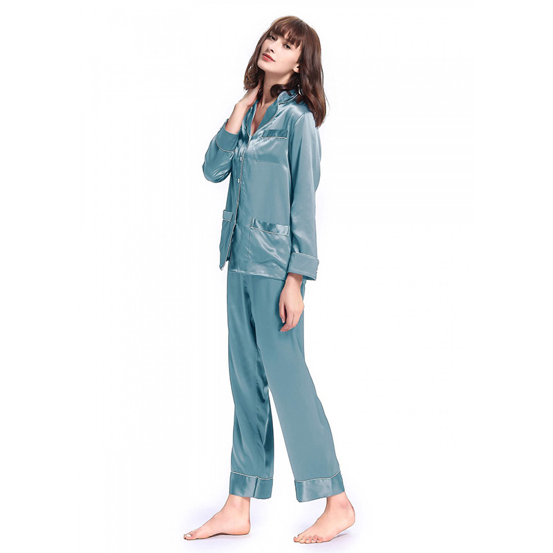 100 % Silk Charmeuse Satin Long Sleeve Shirt & Pants Silk Pajama Sets For Women