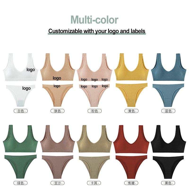 Custom Underwear Manufacturer Customized Seamless Soft Plus Size Underwear Women's Panty Sports Bra Brief Set