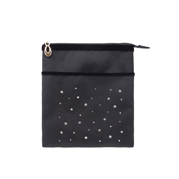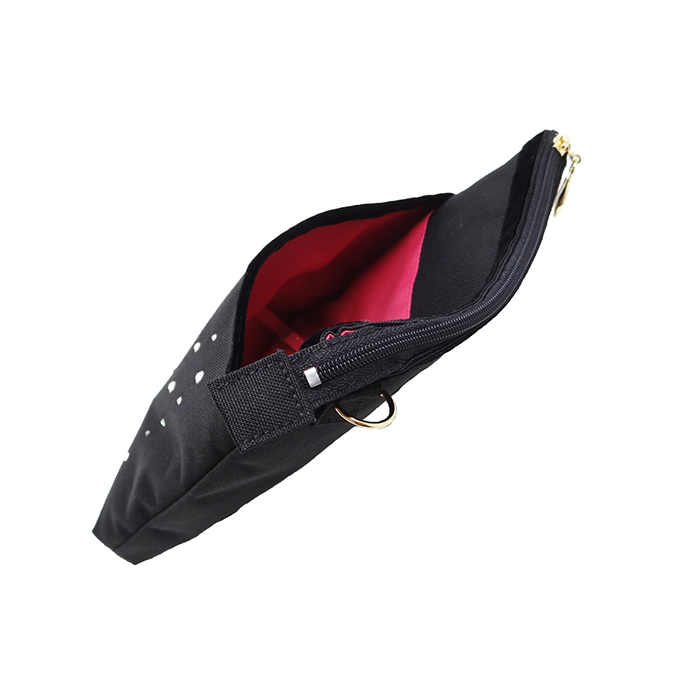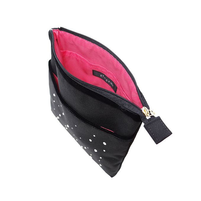 There are pockets, and the brightly colored lining makes it easy to find items.