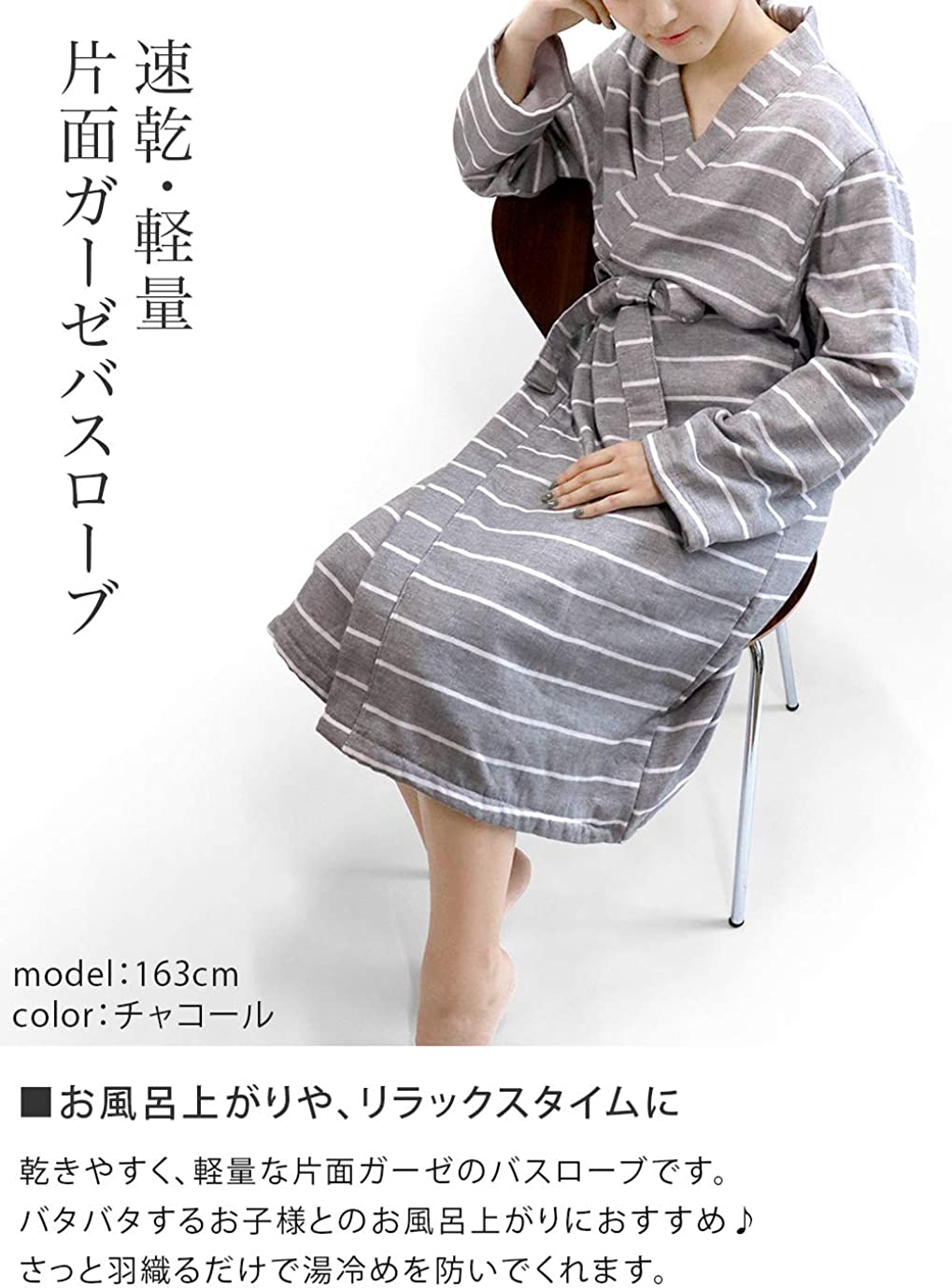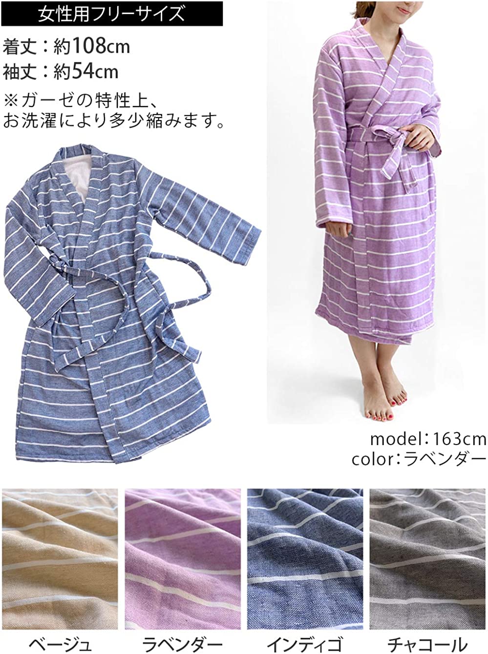 [Wholesale Products] HIORIE Cotton 100% Stripe Gauze Towel Bathrobe Women's Sleepwear Kimono Pajama Lounge Made in Japan Blue