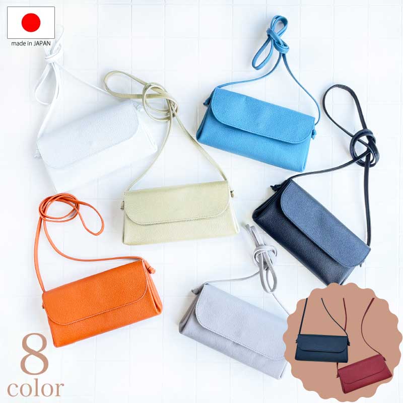 ● Wallet Multifunctional handbag ● Card pocket×4、Coin purse with zipper、pocket×3 ● 8 colors ● Made of a single piece of leather. Lining and outer fabric in the same color ● Made in Japan