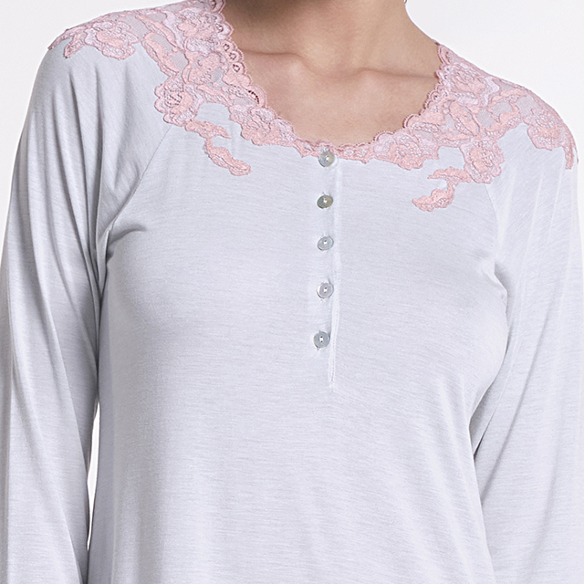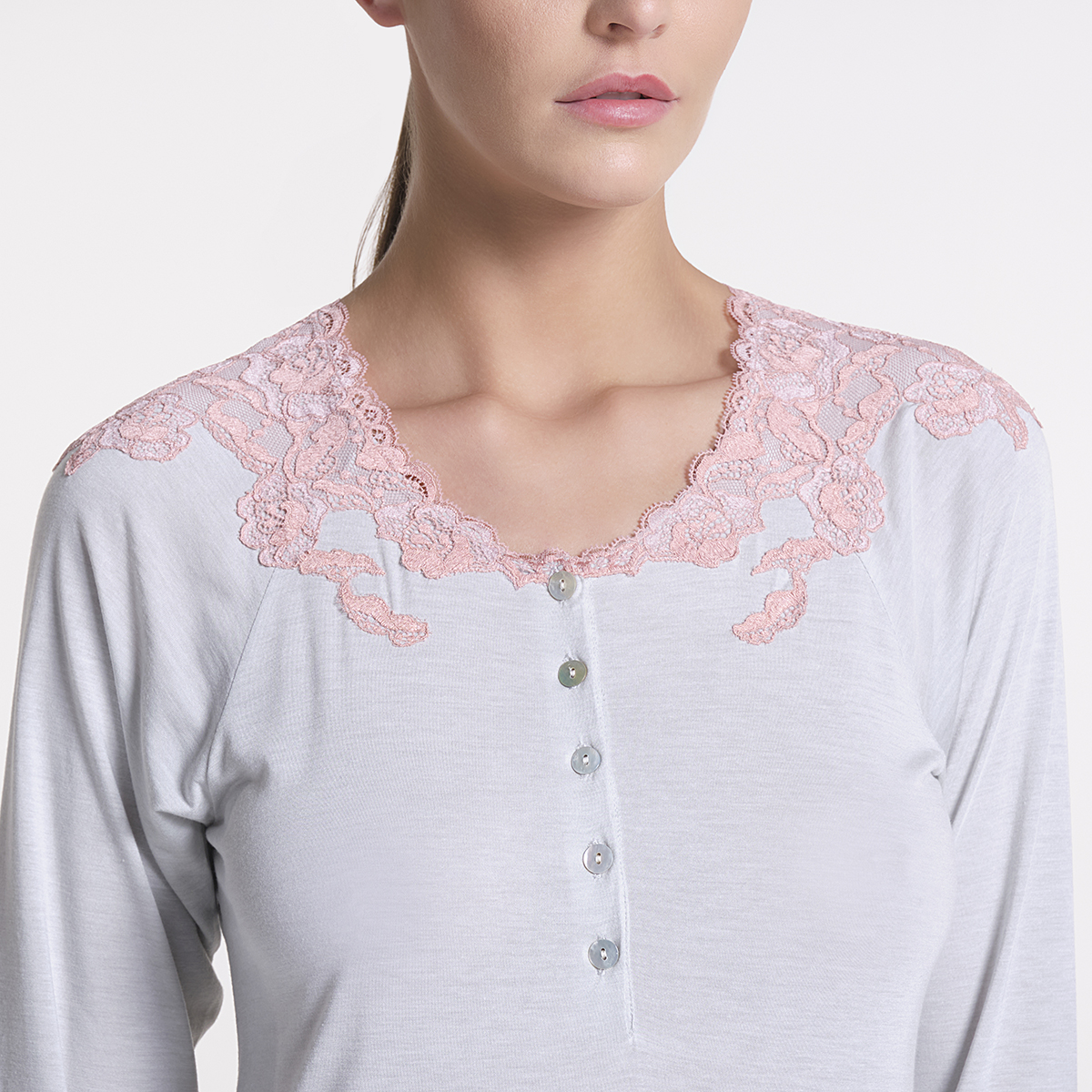 Nightdress in micromodal jersey with elastic macrame lace and matching tulle.