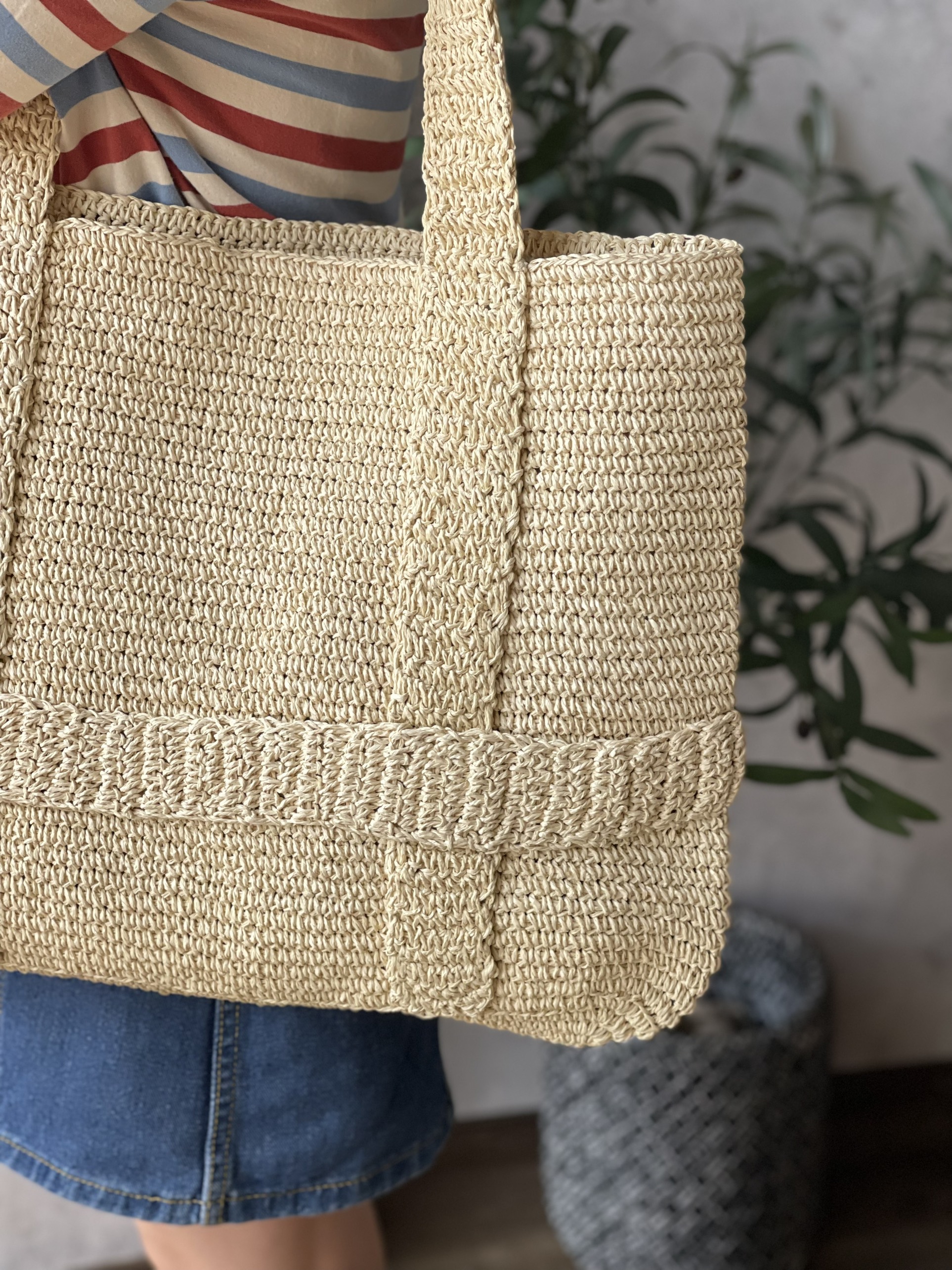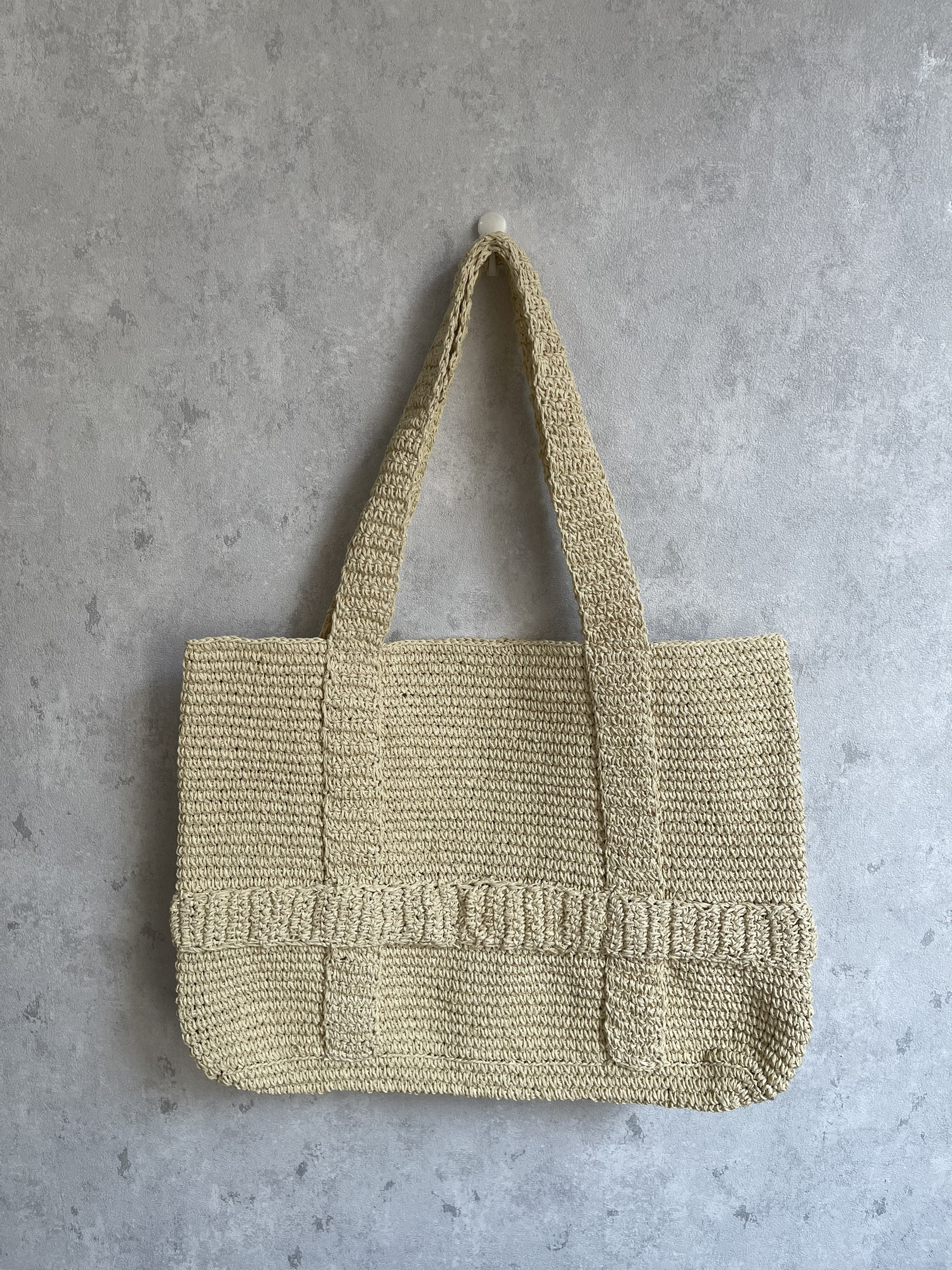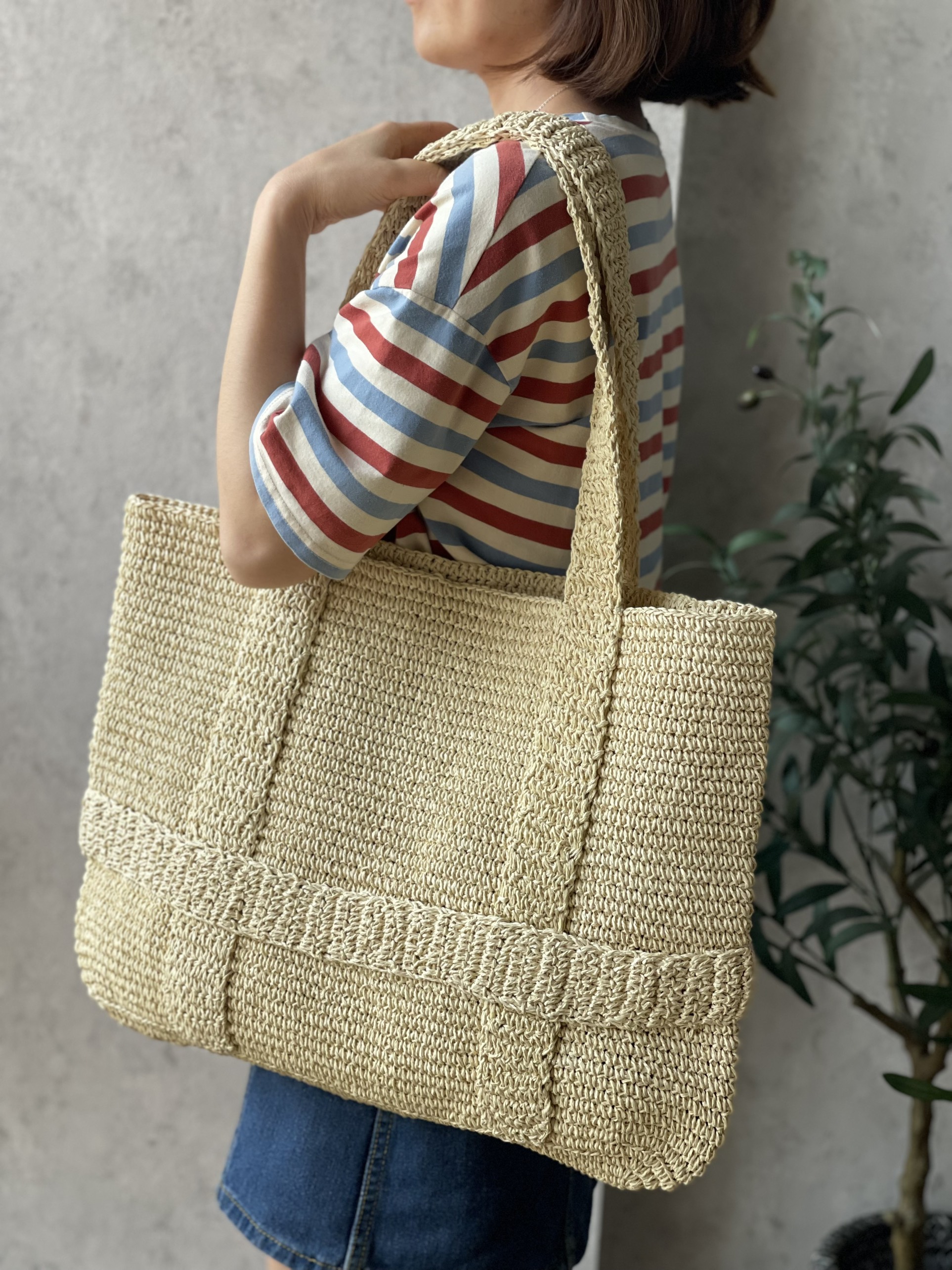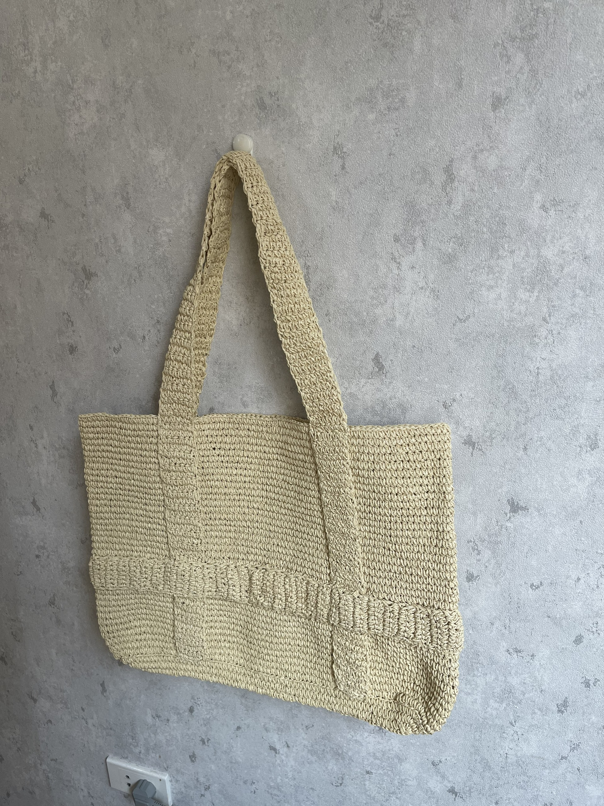 Handmade Big Boho Crochet Bag Beige Raffia Bag Women's Beach Bag