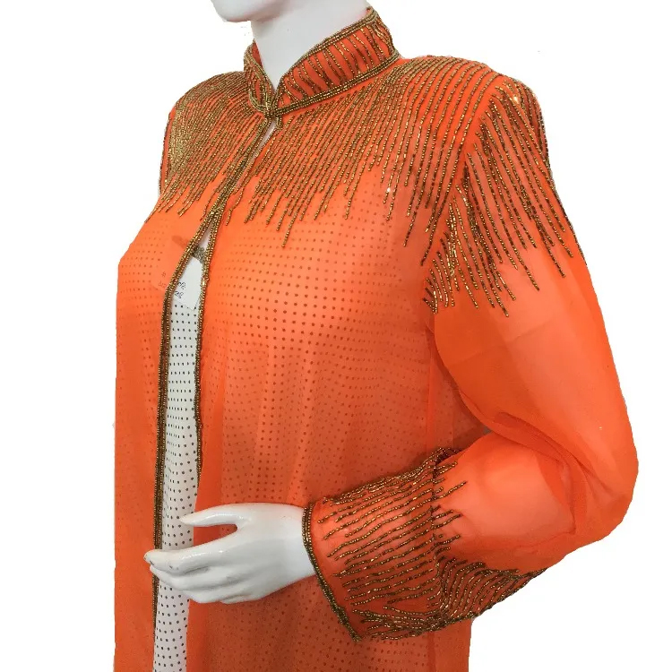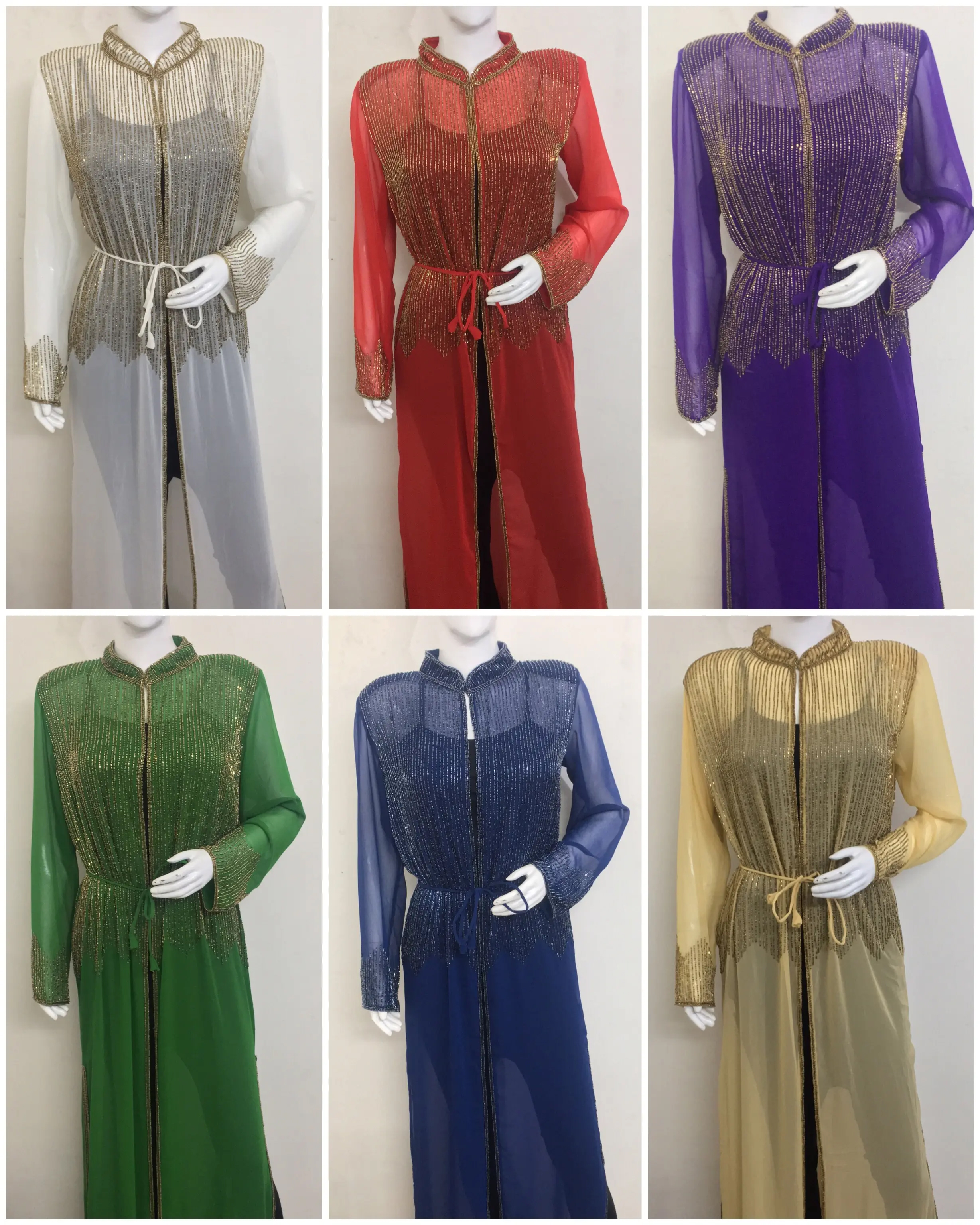 Latest Design Kaftan Dubai Hand Embodied Abaya Dress Poncho Shrug Maxi Dress With Spaghetti Strap for Women