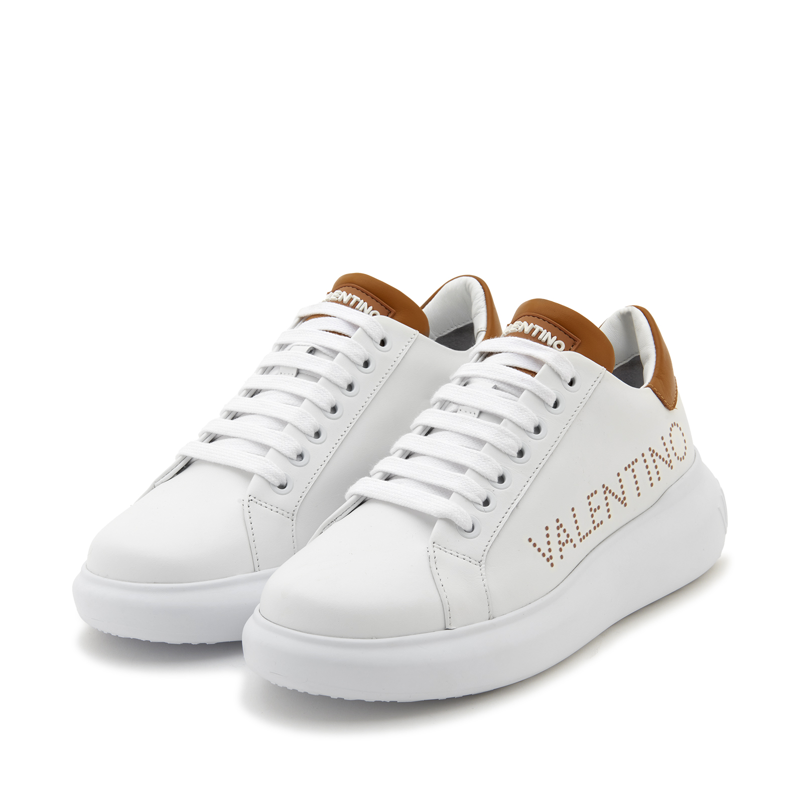 Original Valentino Shoes - Premium White/Cuoio Women's Sneakers Lace up Comfortable - Elevate Your Sophisticated Style