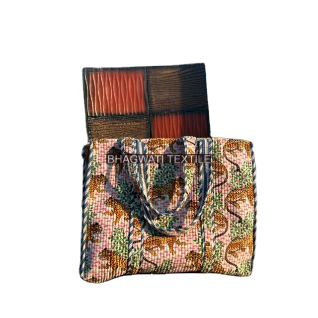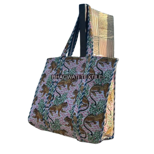 Indian Handmade Animal Printed Velvet Quilted Tote Bag Beautiful Shopping Bag Women's Large Tote Bag