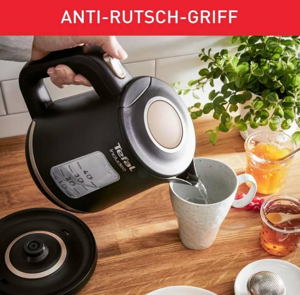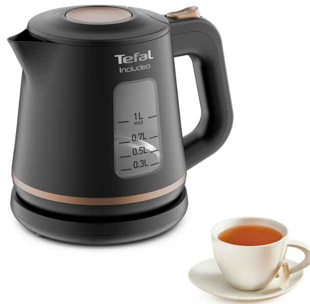 Tefall KI533840 Includeos 1L Jug Kettle 2400W Black with Anti-limescale Filter for Household Car Hotel Outdoor Use Solar Powered