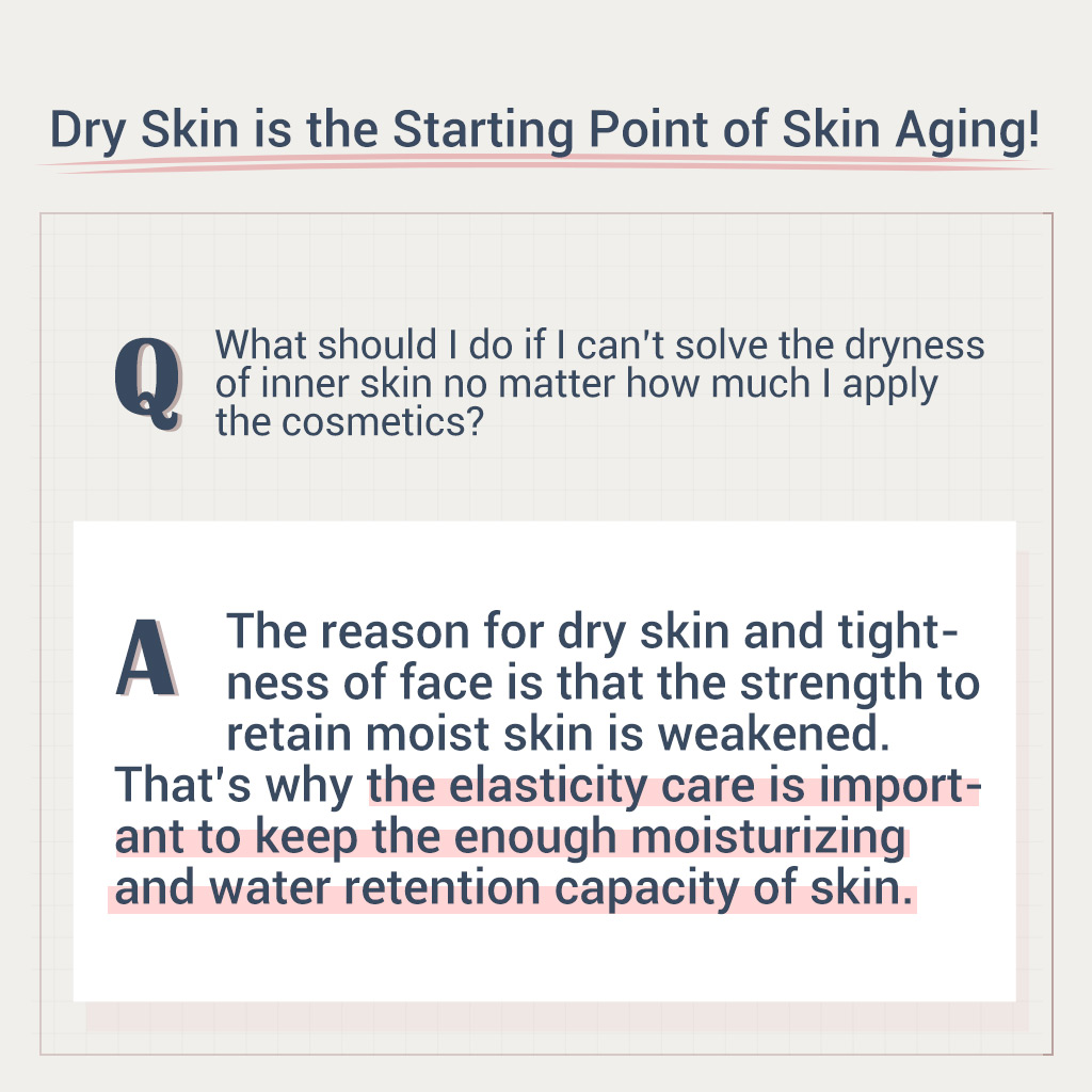 - The Hydrolyzed Collagen, which is more finely split than ordinary Collagen, is absorbed by the skin to offer skincare for inner dryness and declined elasticity!