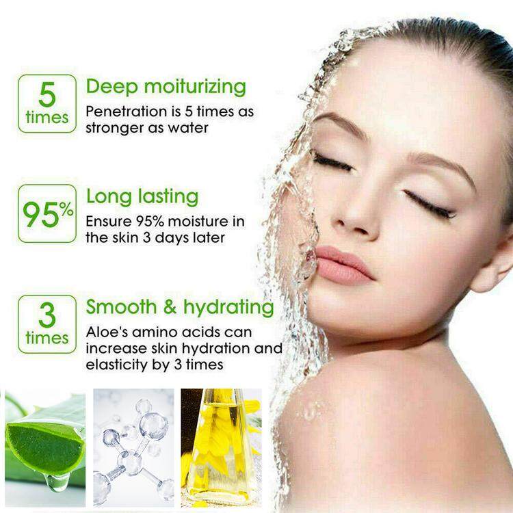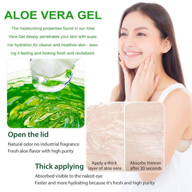 1、Soothing Hydration for Skin: The moisturizing properties found in our aloe vera gel deeply penetrates your skin with superior hydration for clearer and healthier skin, leaving it feeling and looking fresh and revitalized.