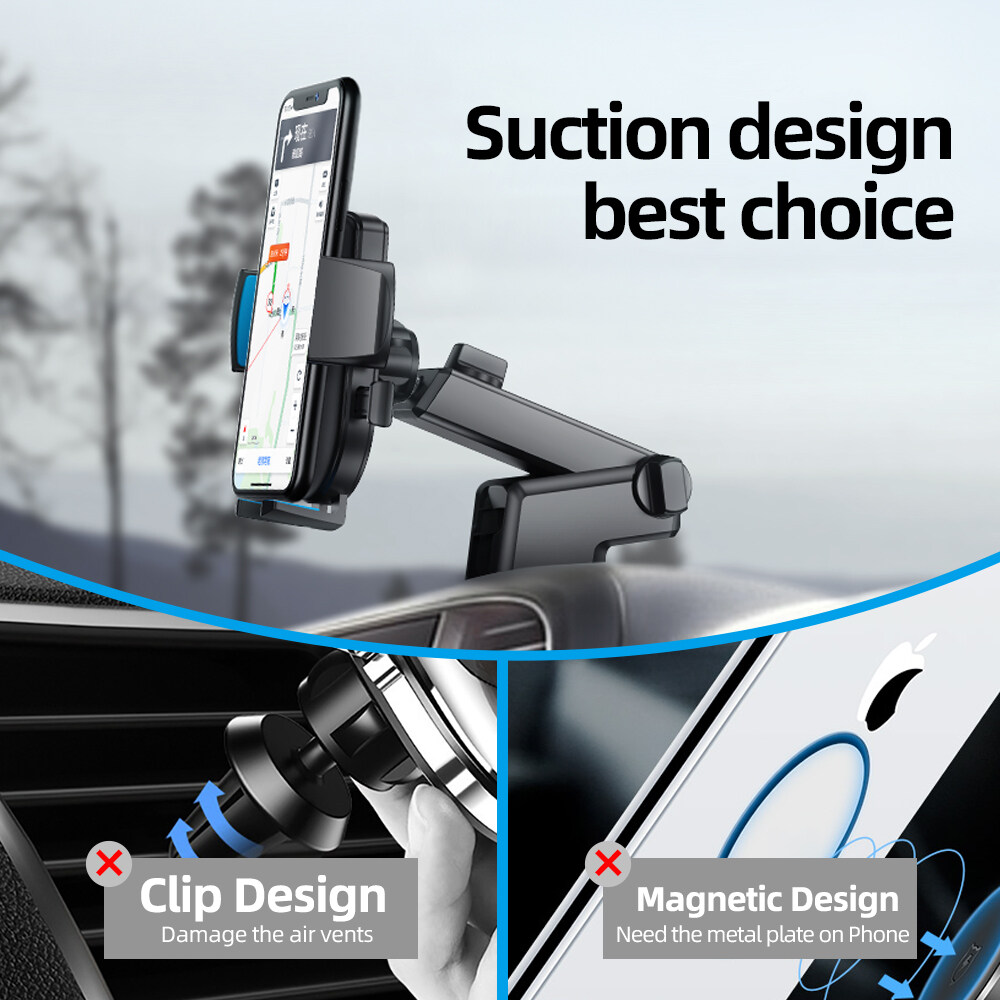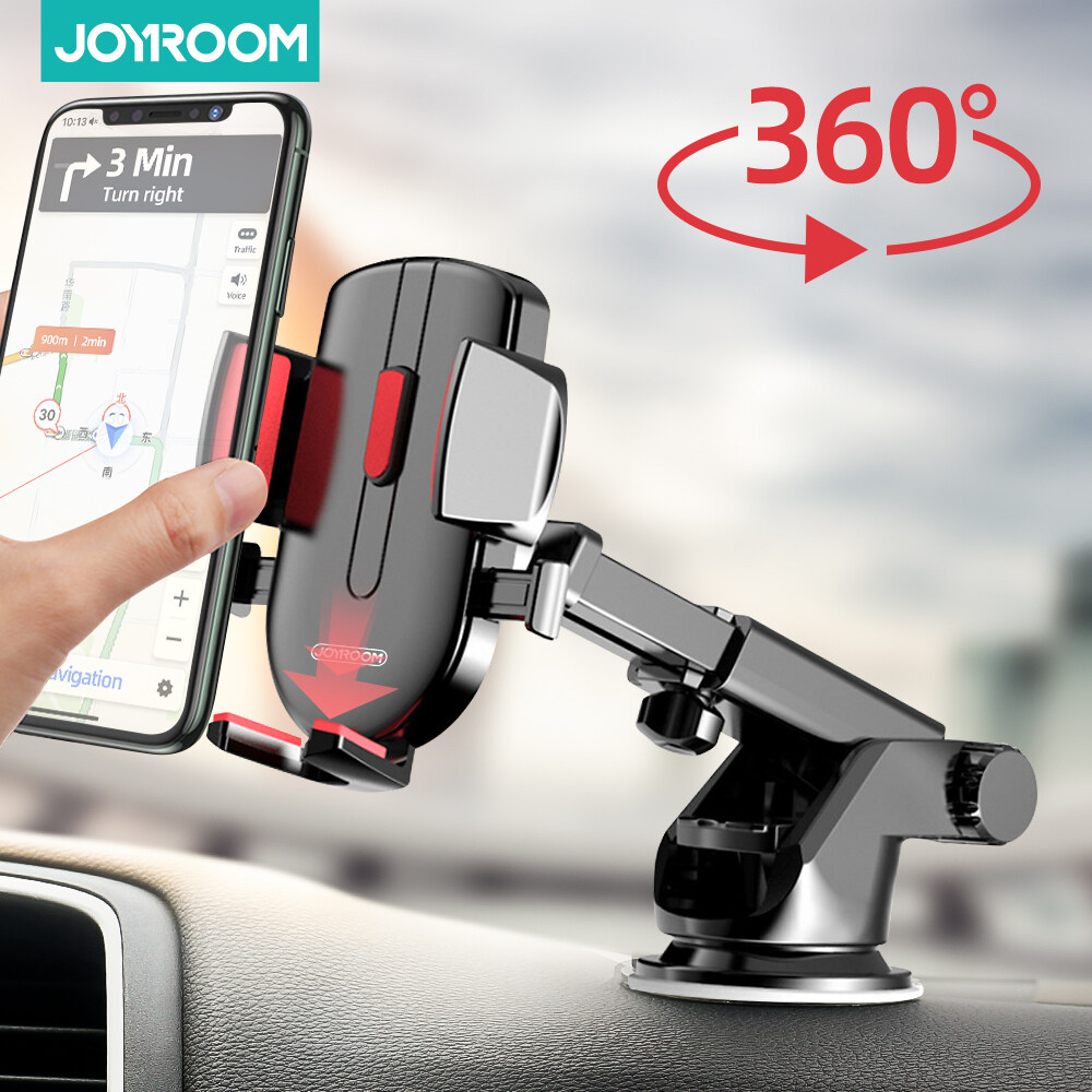 Joyroom Car Phone Mount Windshield Air Vent Smartphone Gravity Cradle Long Arm Clamp Strong Sucker Dashboard Phone Holder For iPhone /Samsung/Huawei/Xiaomi 4-6.7 inch