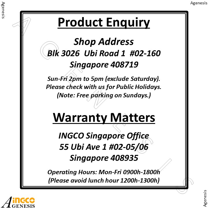 Operating Hours: Mon to Fri – 0900 – 1800 hours
