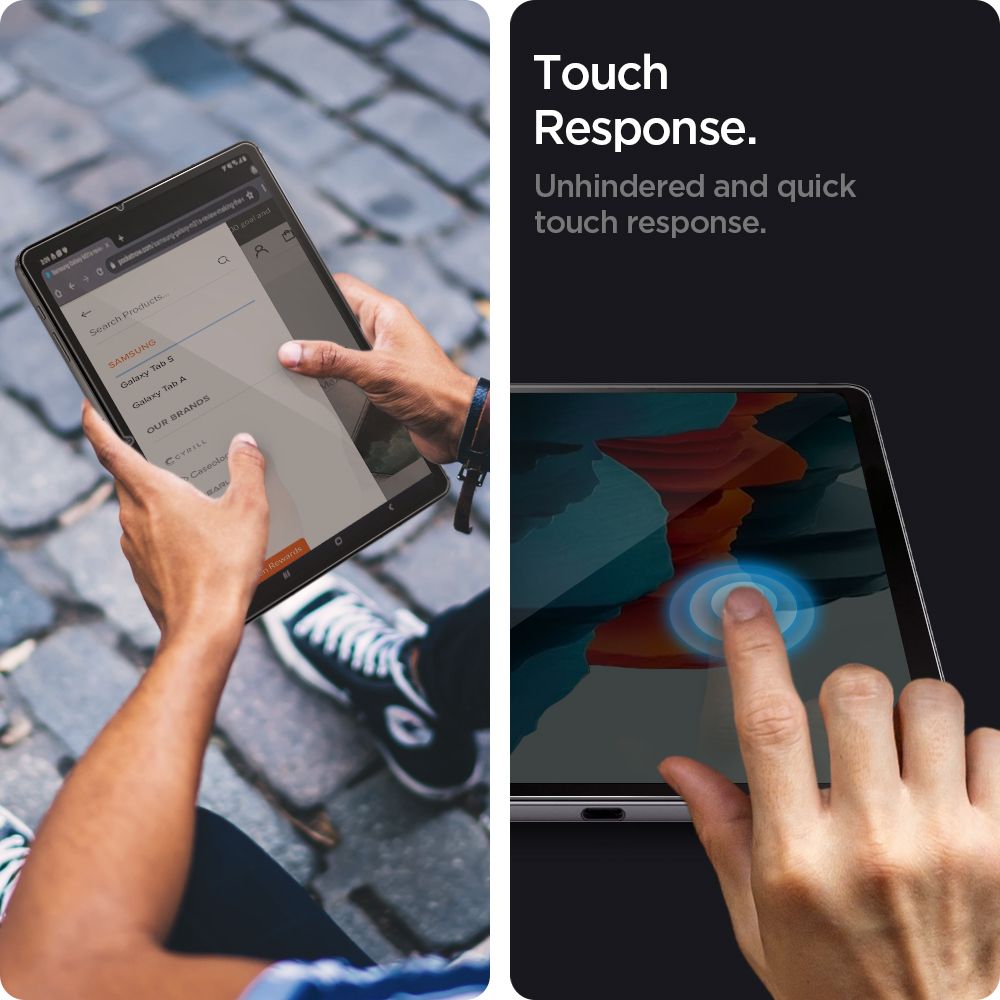 Less time, guaranteed alignment. Spigen Glas.tR EZ Fit comes with an innovative tray designed to eliminate the time wasted to achieve the greatest alignment. Simply place the tray over the device, press the center and watch the glass adhere in place. Shield the screen with 9H hardness Glas.tR EZ Fit with the latest and easiest technology.
