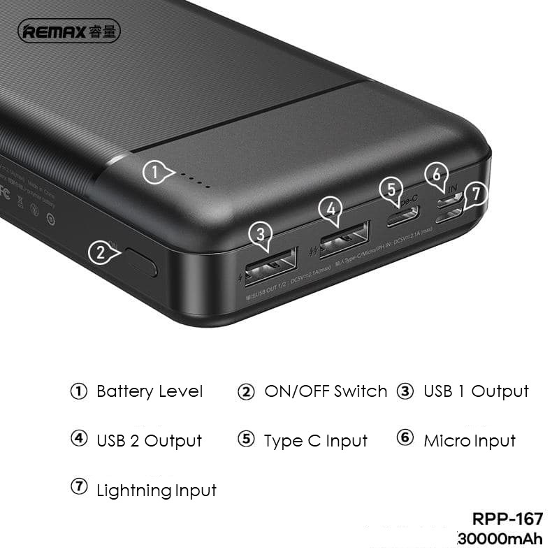 REMAX 2 USB Lango Series 20000mAh 30000mAh 2.1A Power Bank 20000 30000 mAh Portable Charger Charging Battery Compatible with Xiaomi Samsung iP Huawei