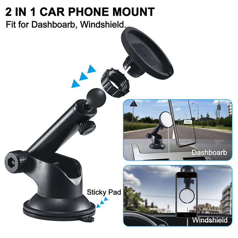 Decophone Car Mount Phone Holder Stand for Magsafe Charger, Suction Cup on Dashboard Windshield, Magsafe Mount Phone Holder for Car,Compatible with iPhone12 Series