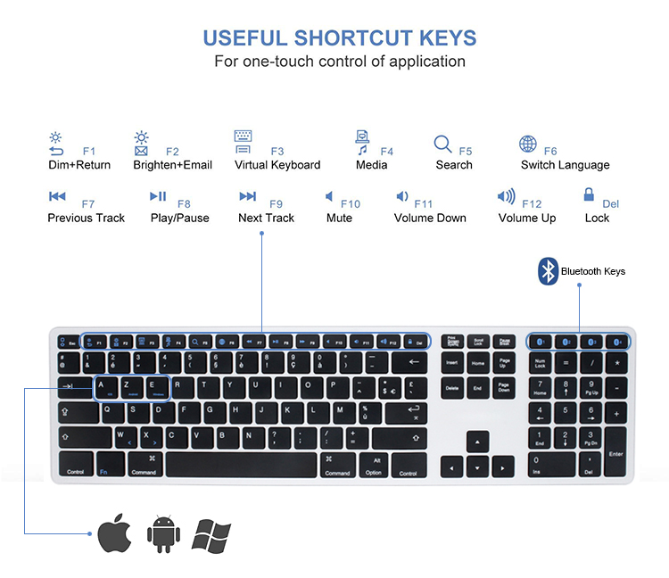 Computer Accessories Black Multi Device Big Keys Keyboard Teclado Inalambrico Blue Tooth
