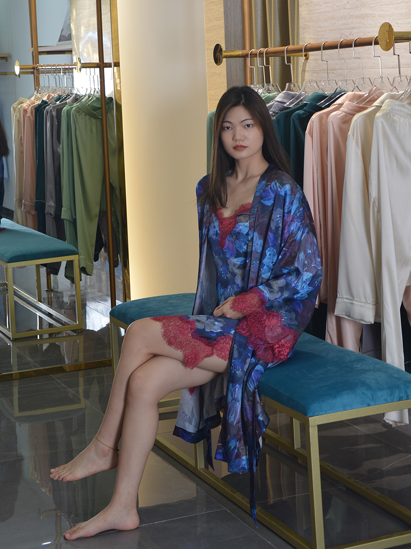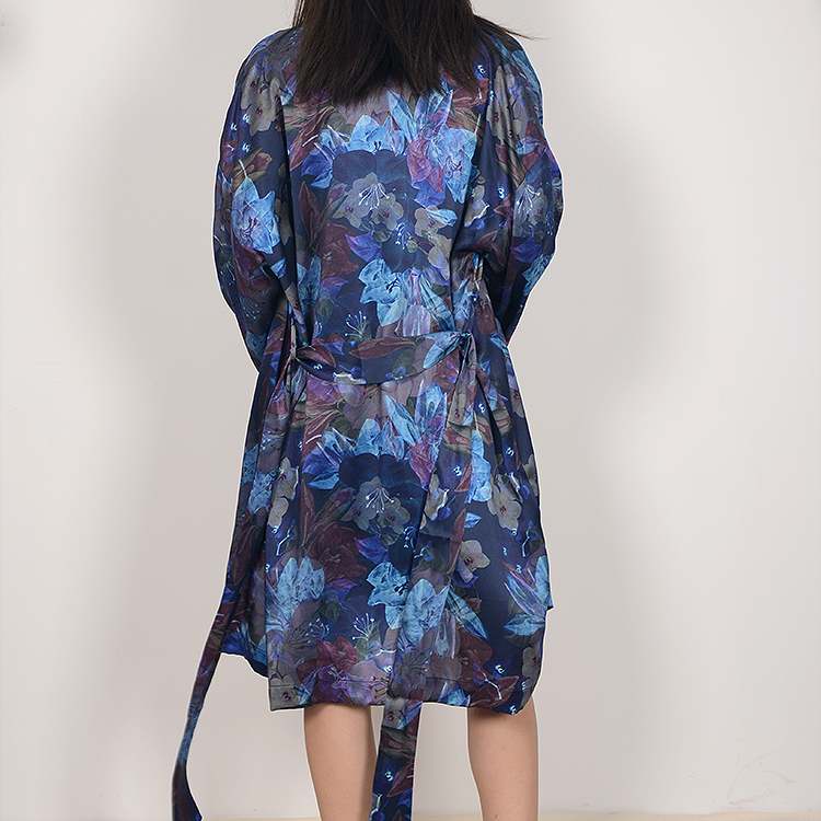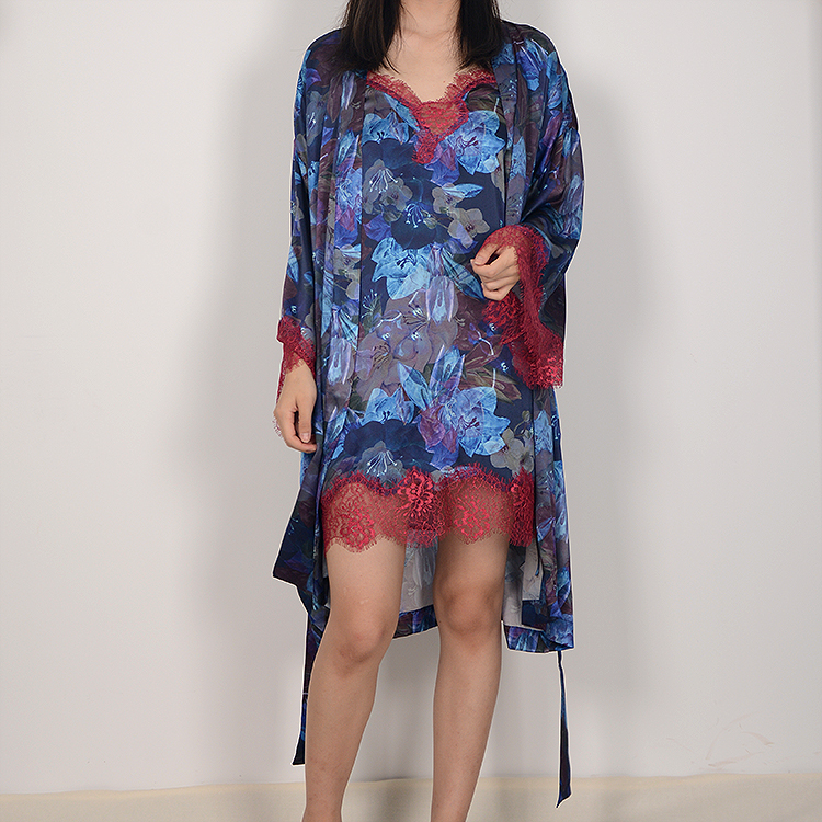 Guixiu Women's 100% Silk Robe & Slip Set Print Silk Sleepwear
