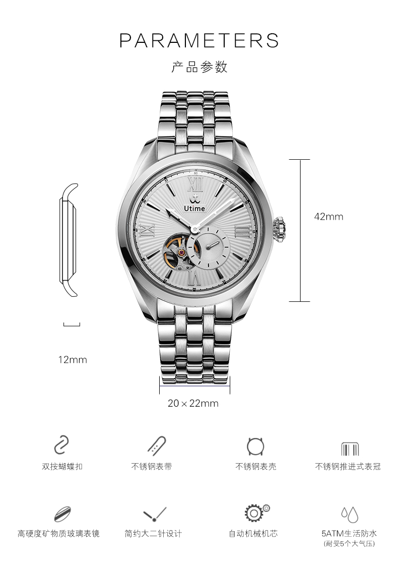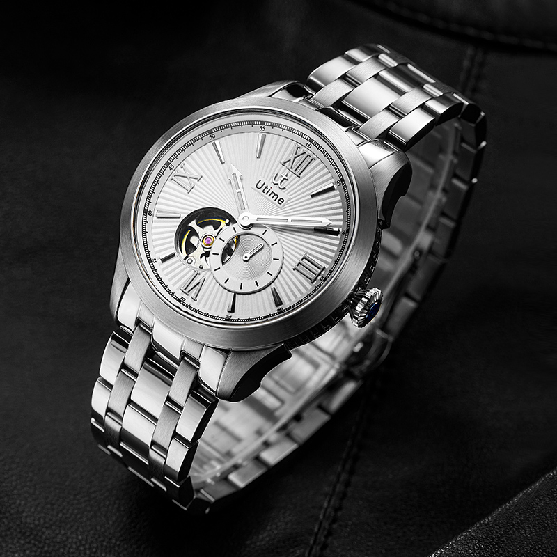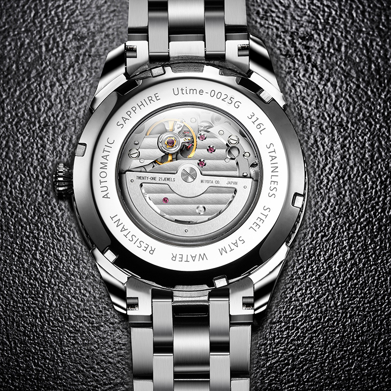 Utime High Quality Men's Automatic Watch Visible Mechanical Movement Roman Number Dial Japan Automatic Movement U0025G