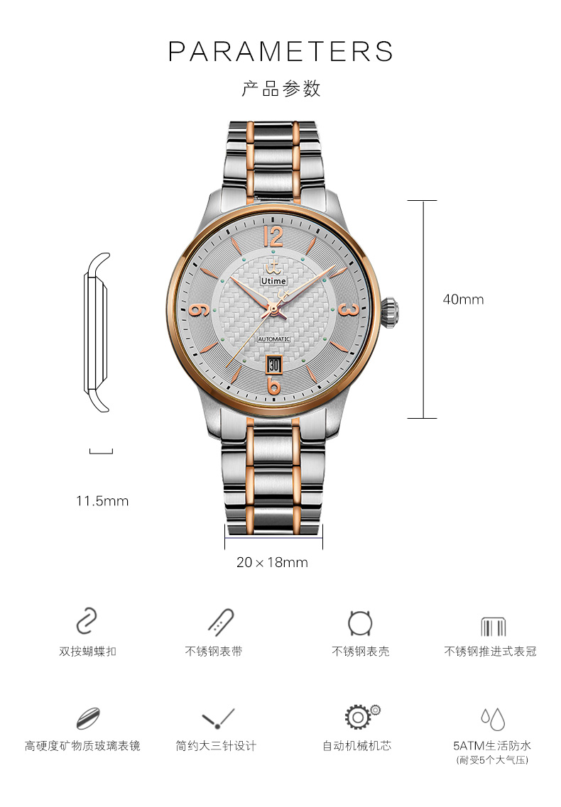 Utime Charming Automatic Watch For Man Calendar Date Display Luminous With Arabic Number Dial Japanese Automatic Movement U0036G
