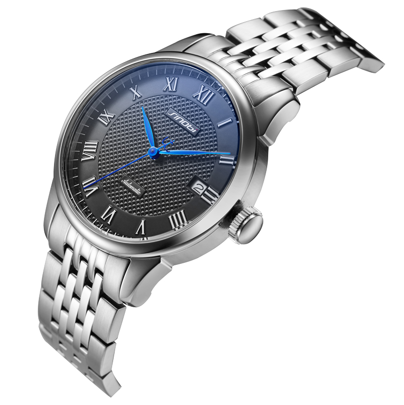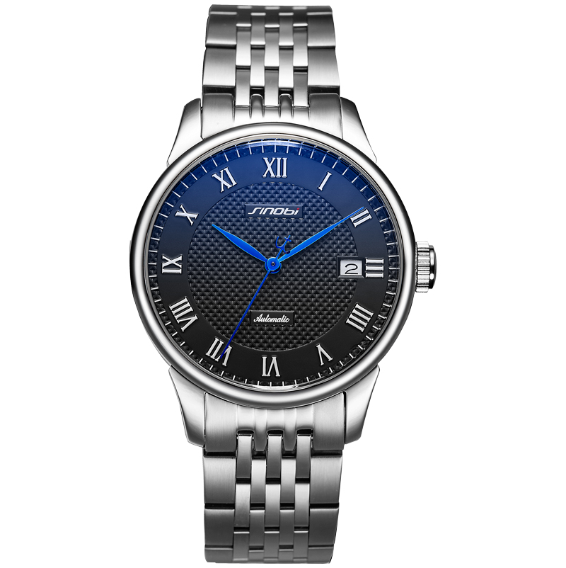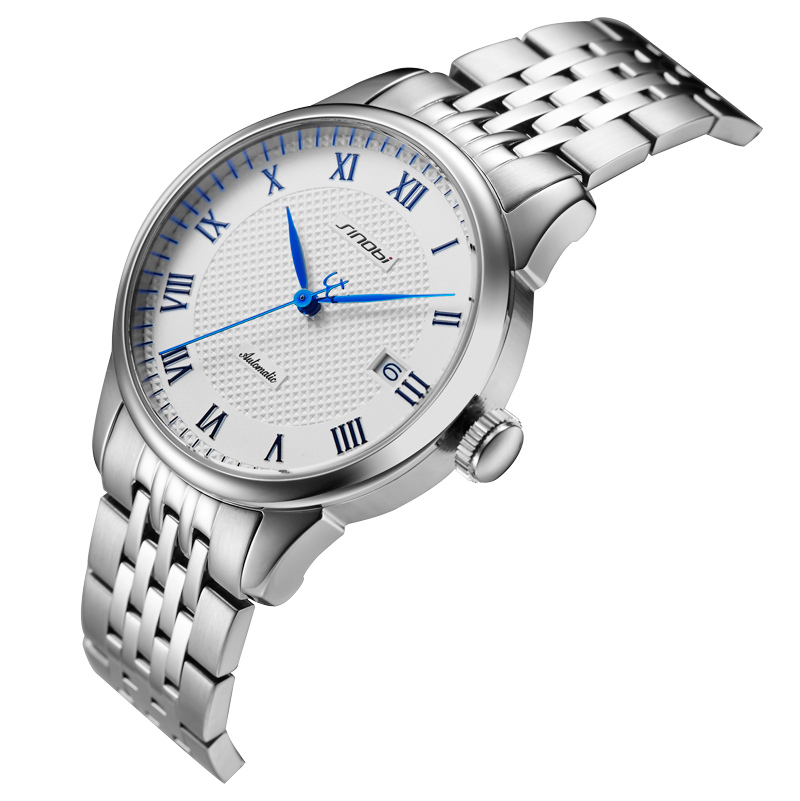 SINOBI Automatic Watch For Man 316L Stainless Steel Case & Band Classic Roman Number Dial Calendar Automatic Movement 1246G