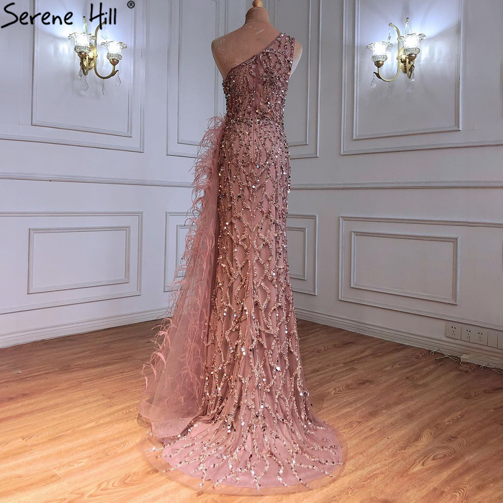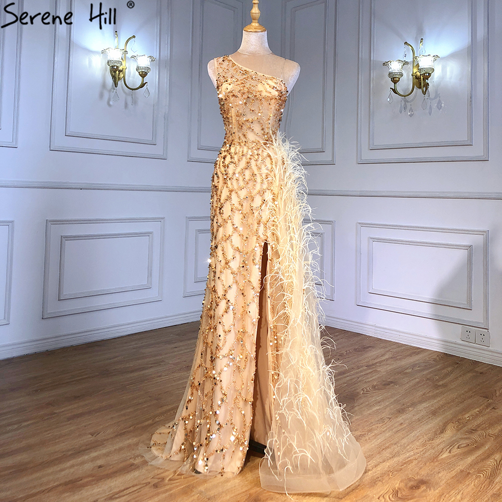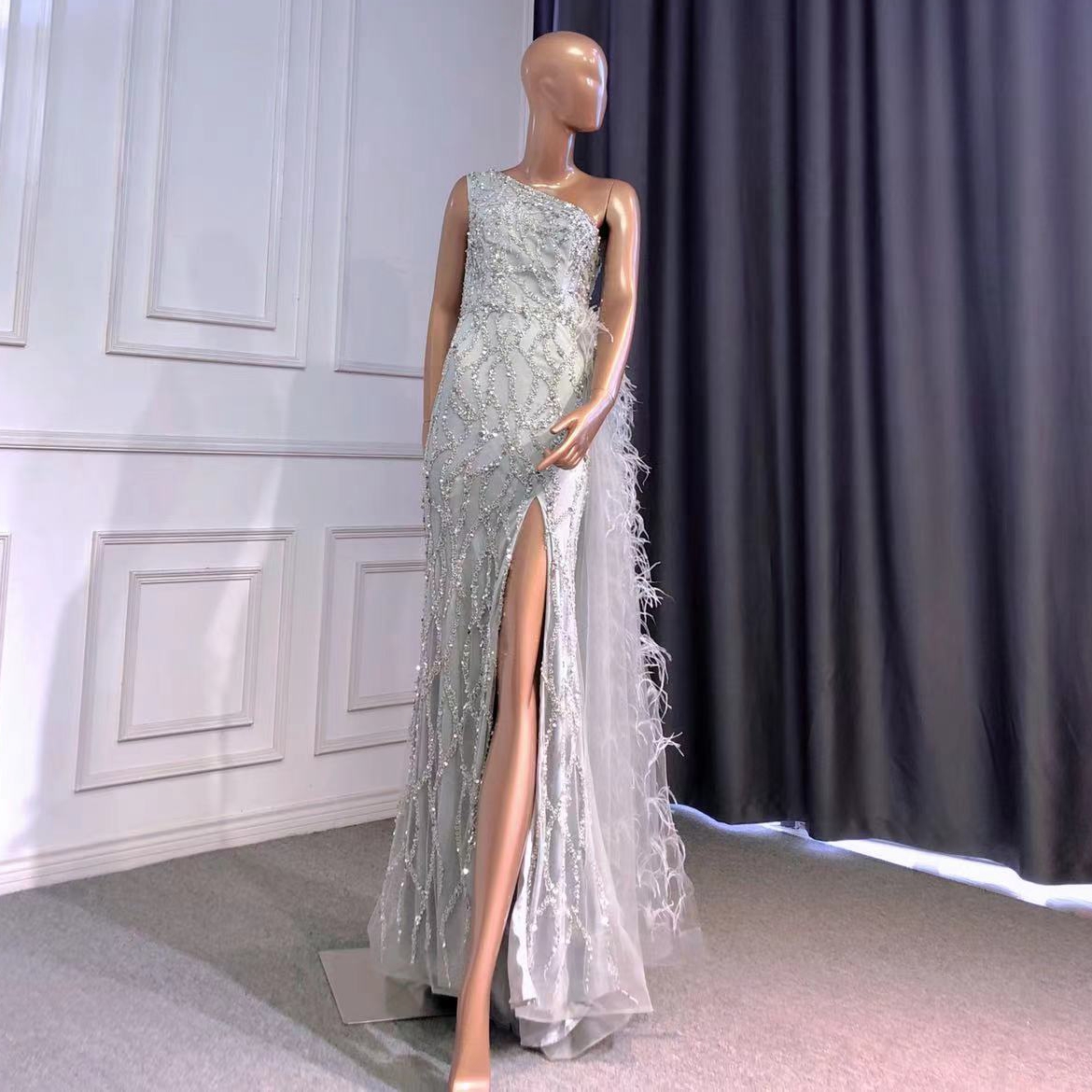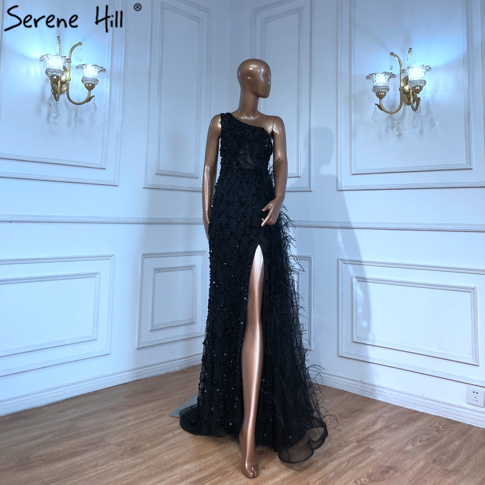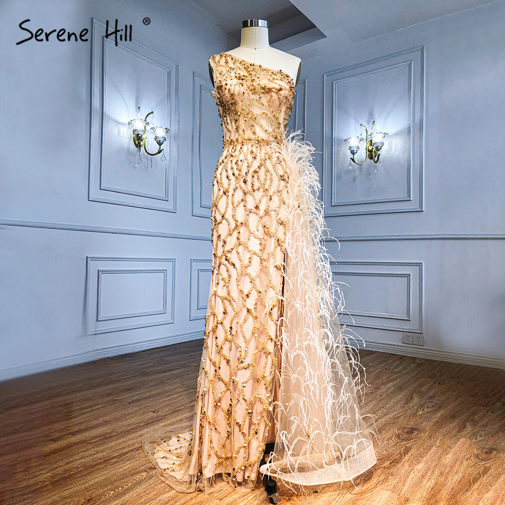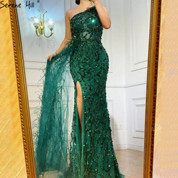 Green Beaded Feathers One Shoulder Stunning Evening Gowns Serene Hill La70829 High End Women Sexy Party Dresses With Split