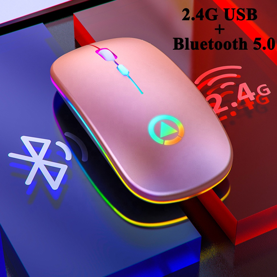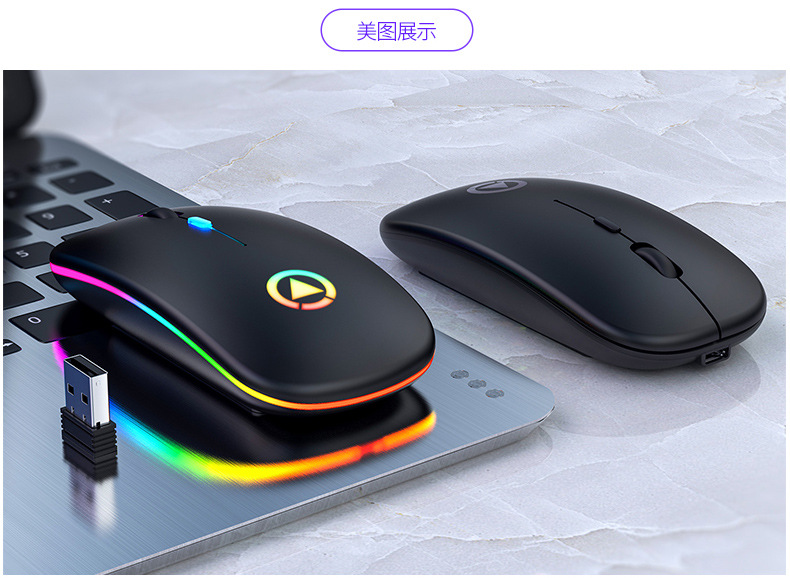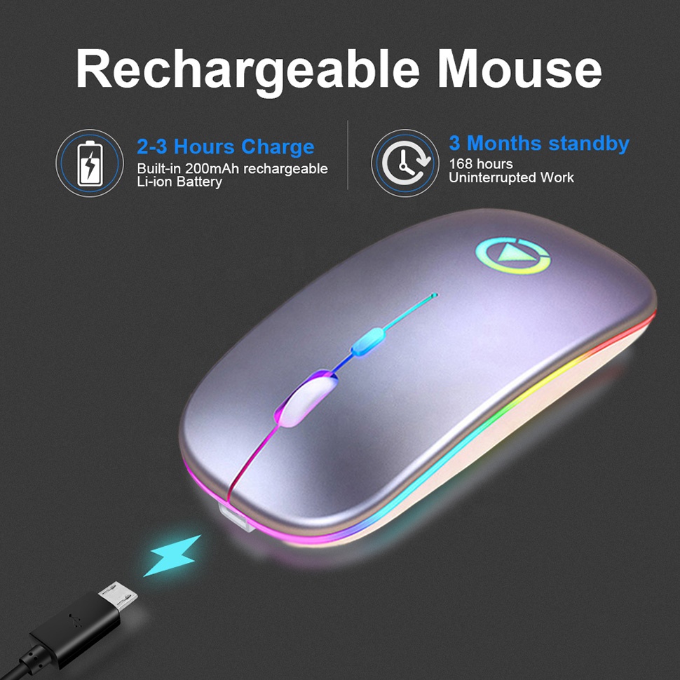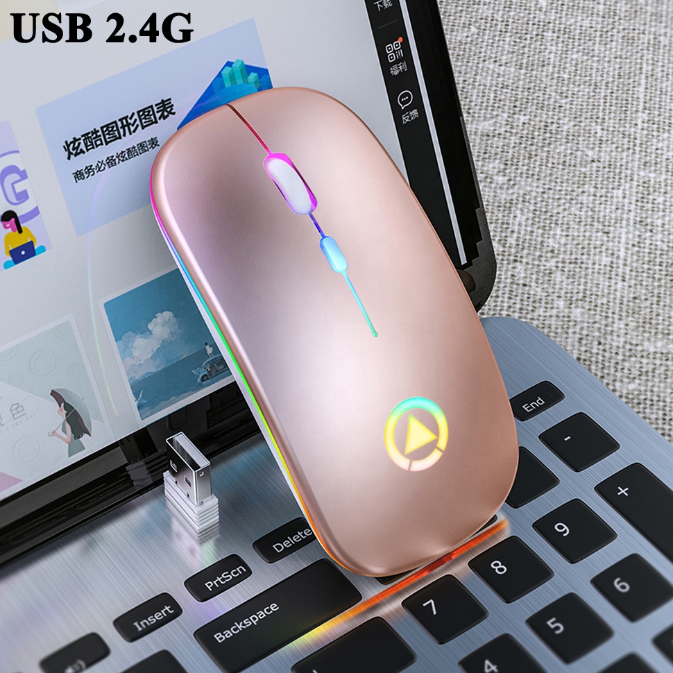 New Ultra-thin Slim 2.4g Mini A2 Wireless Mouse Silent Mute Rechargeable Led Colorful Lights Computer Mouse