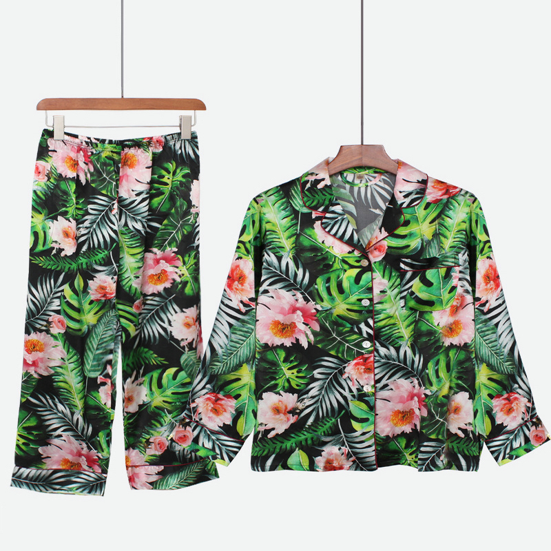 Silk Pajamas Sets Satin Silk Homewear Sleepwear Pyjamas Set Pijamas Long Pajama Suit 100% Silk For Woman Brand Women's 2 Pieces