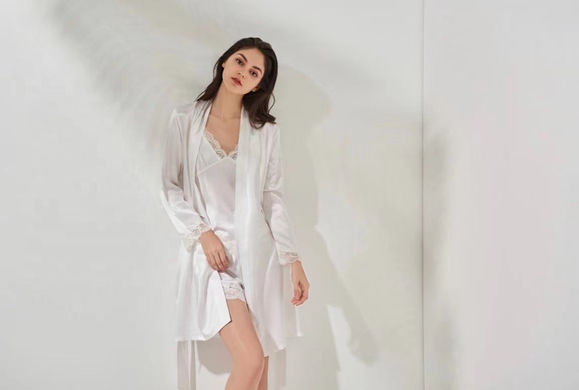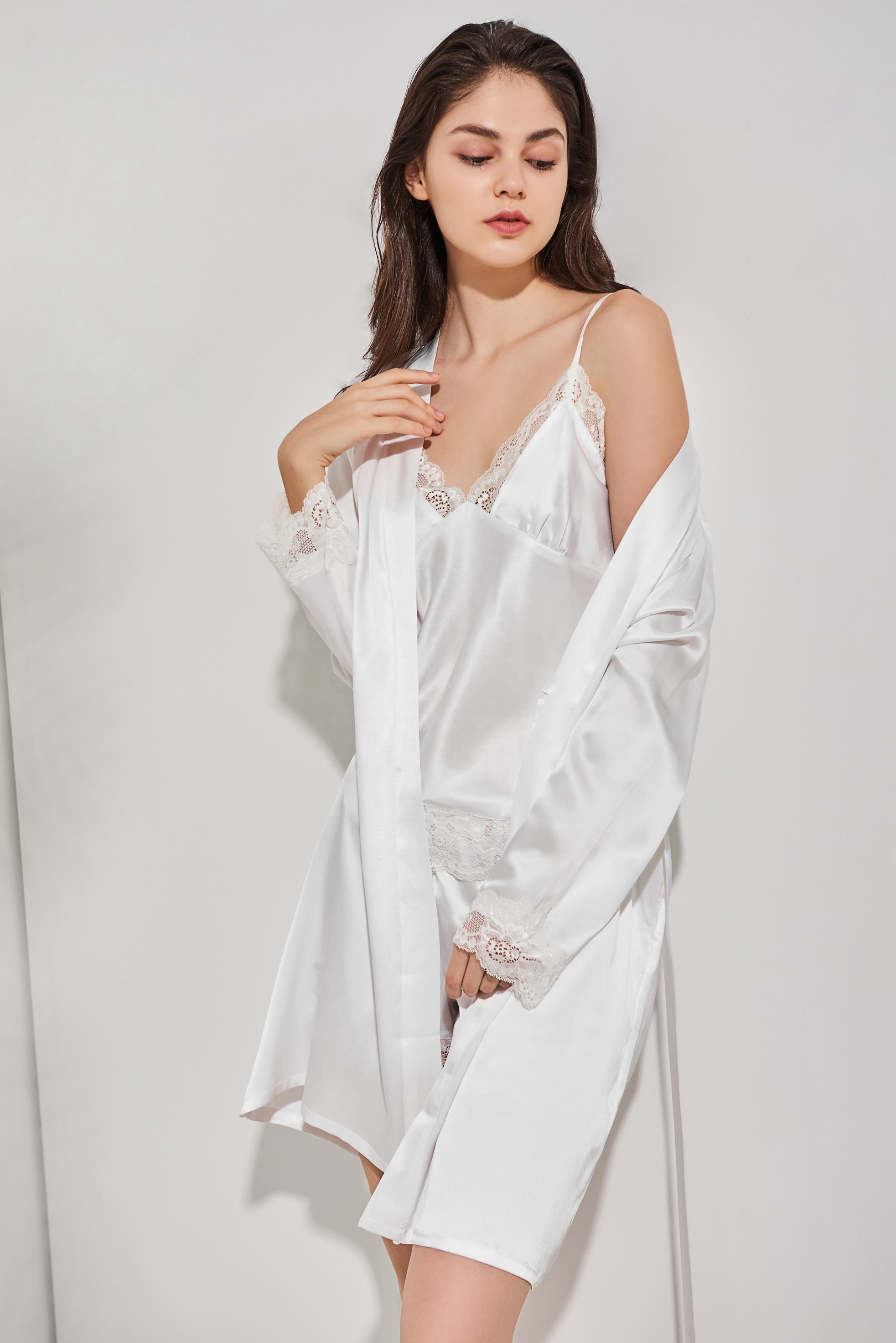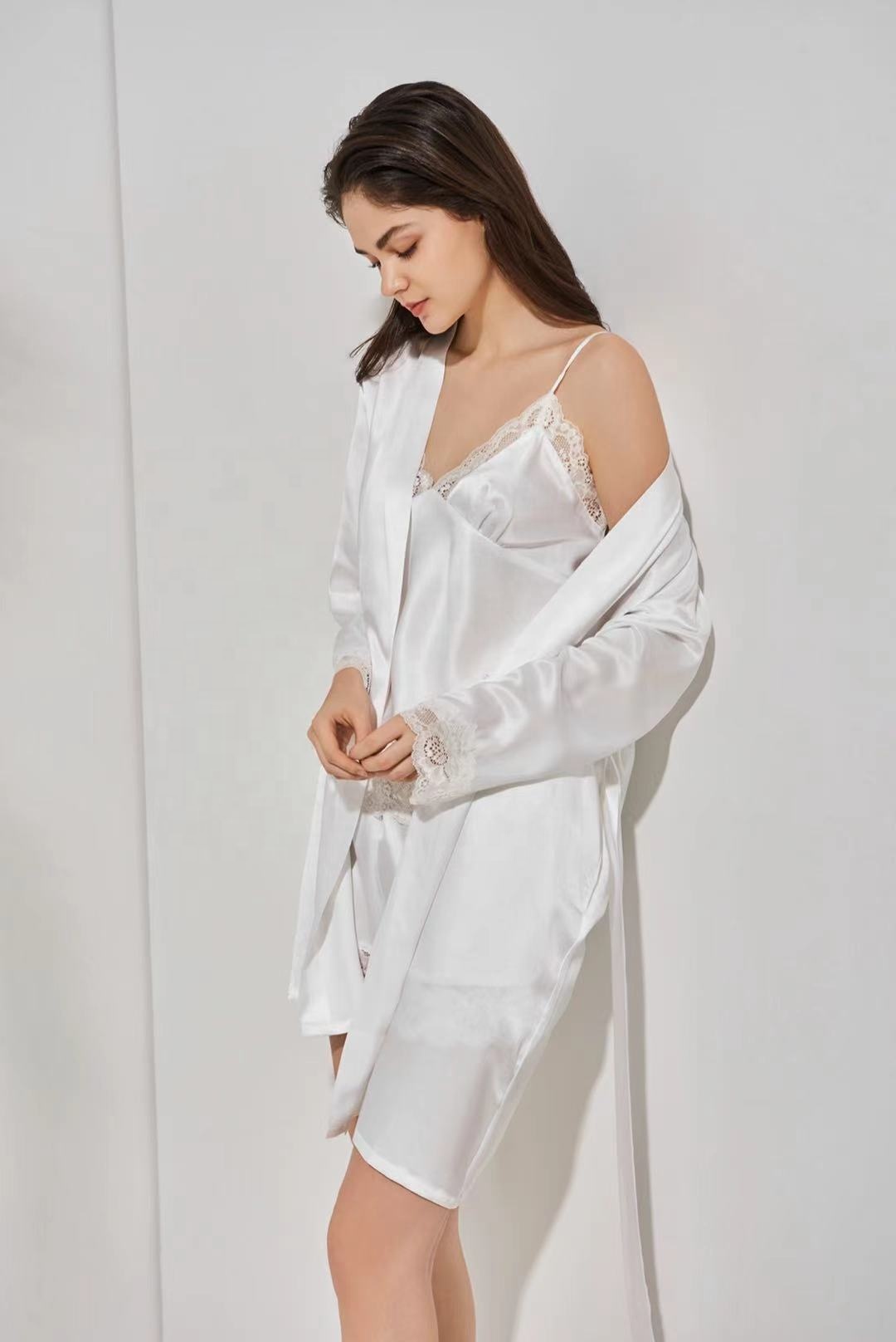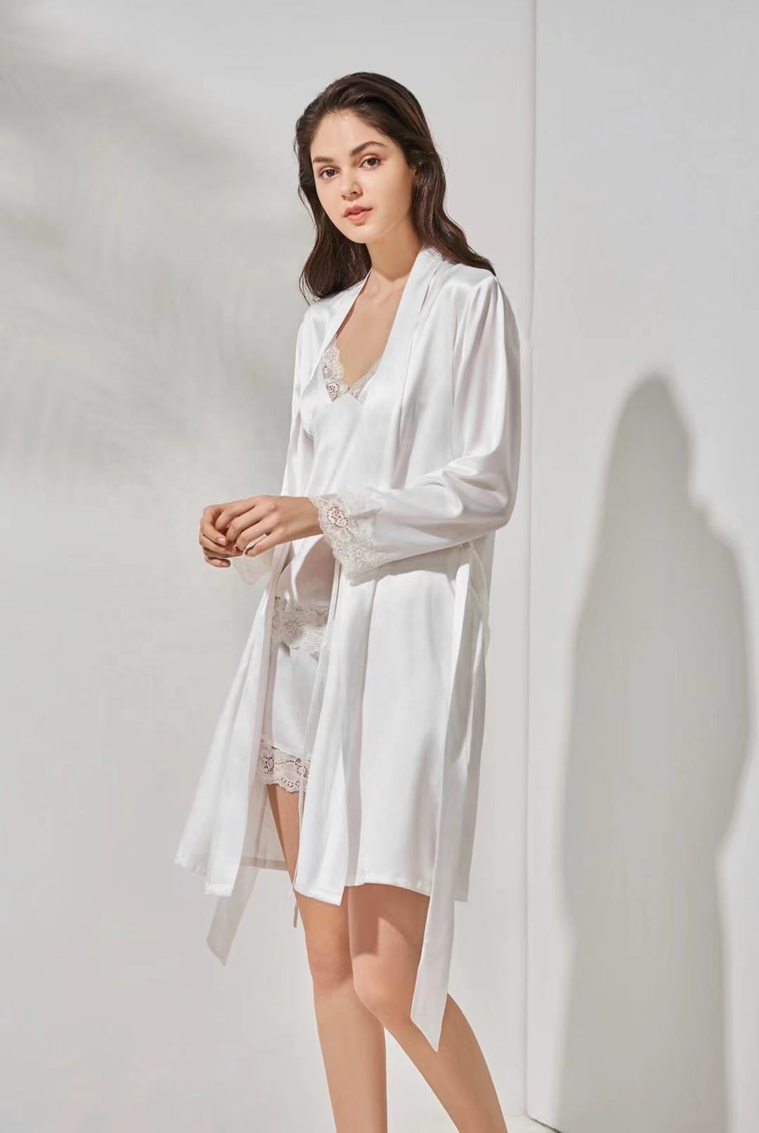 22mm Lace Trim Sexy Nightrobe Fashion Women 3 Piece Set Casual Women's Sleepwear