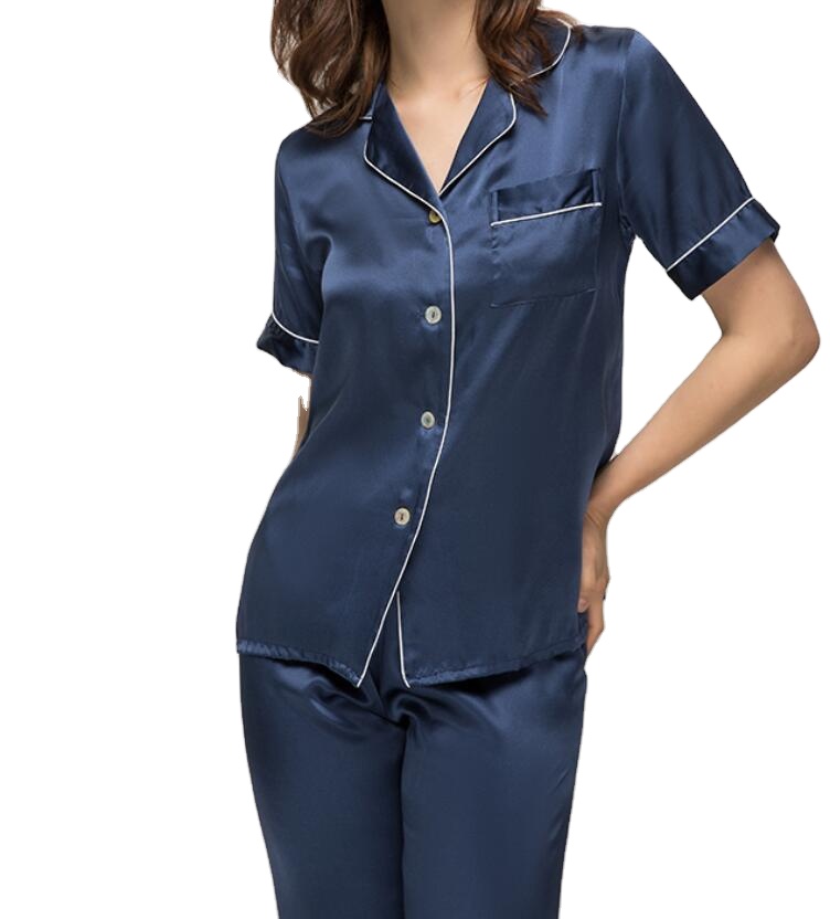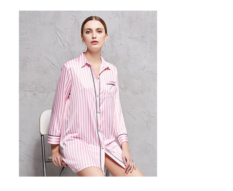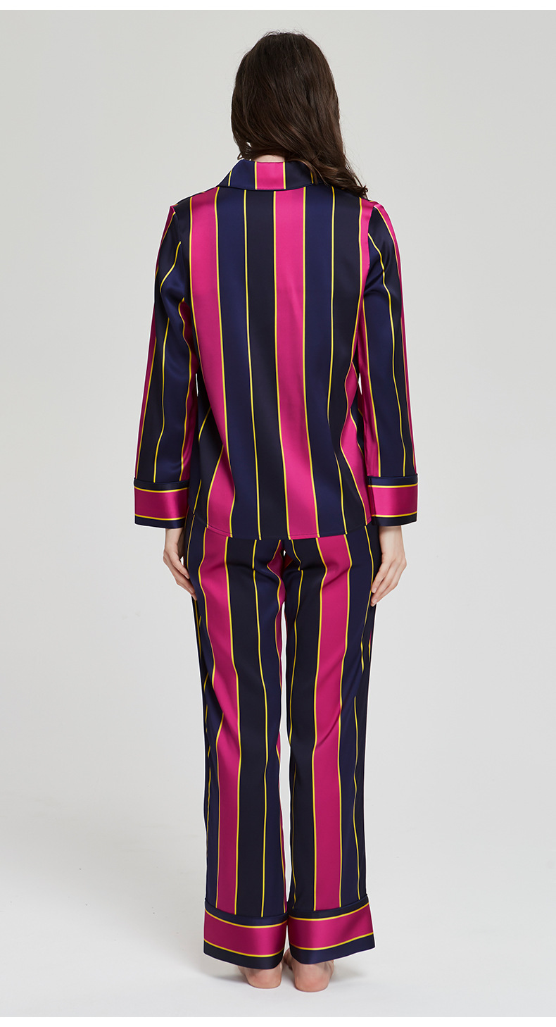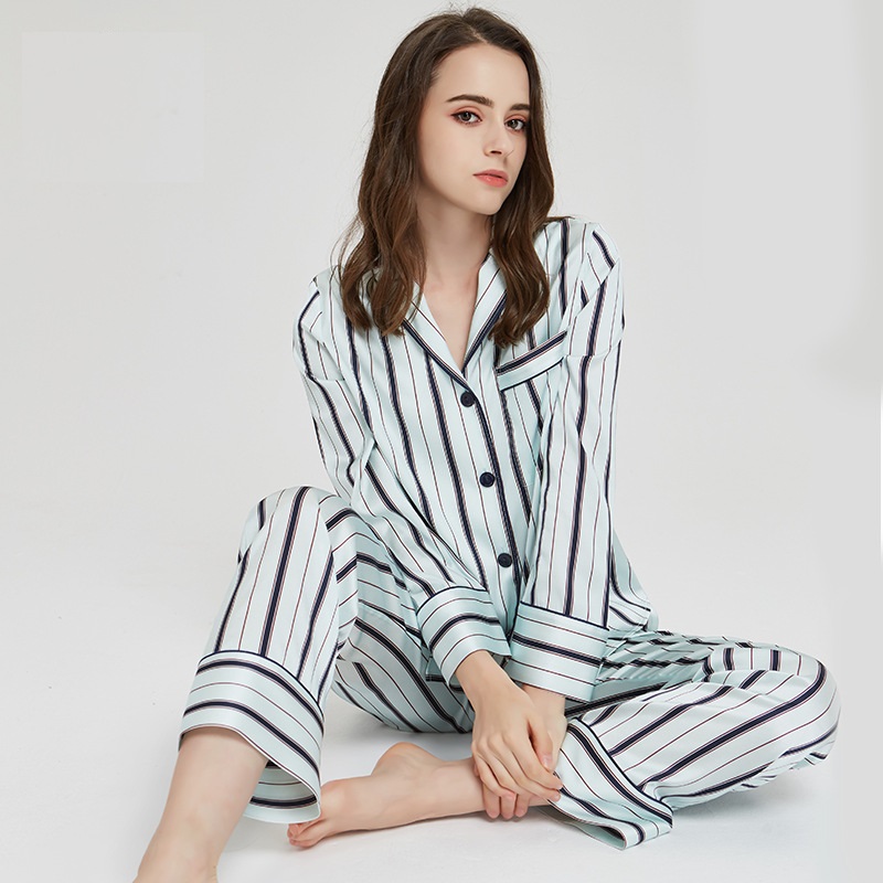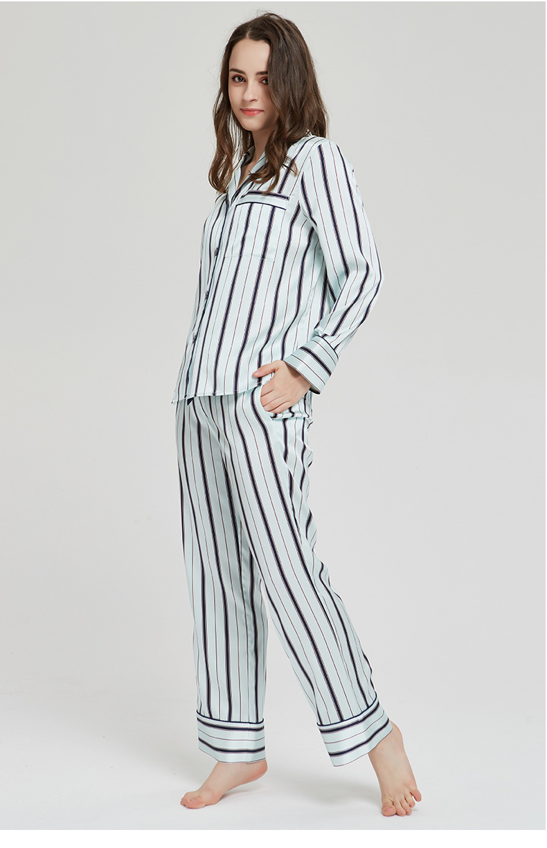 2022 100% Pure Women's Classic Mulberry Stripes Printed Silk Pajamas Set Women