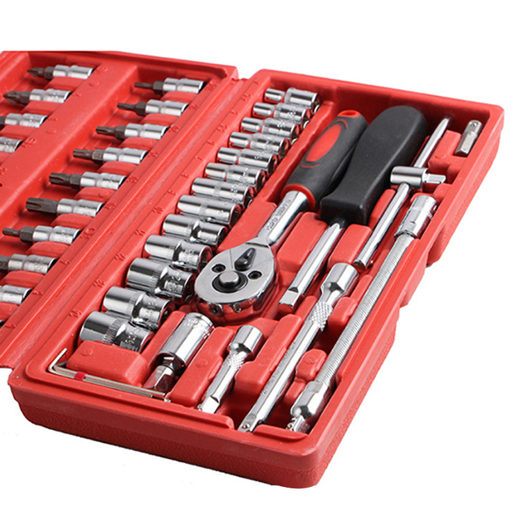 46pcs In One Set Machine Auto Repair Tools Combination Set Impact Socket Wrench Spanner 1/4 Drive Bit Set Ratchet Wrench
